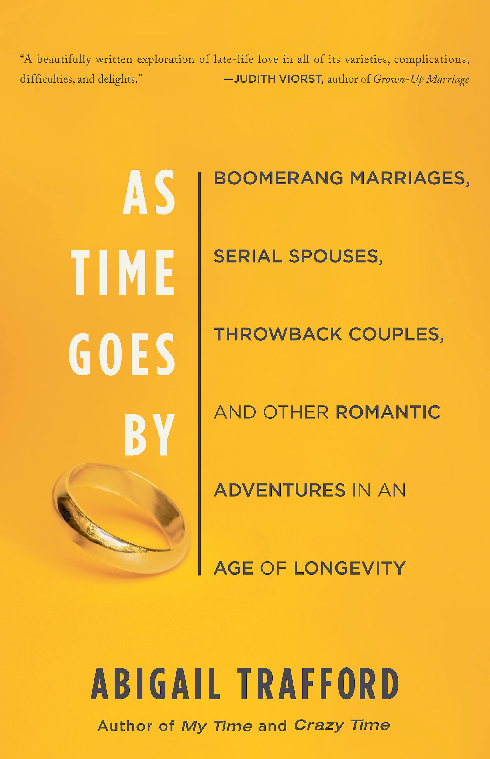 Trafford deftly narrates what it means to love and be loved in the decades after midlife — and she offers solutions to the most common problems that define this time of life. Whether she’s shedding light on “retired-spouse syndrome,” sharing stories of sexual turmoil, explaining how to plan a marital time-out or navigate the troubled waters of divorce, Trafford’s wise and compassionate counsel is imbued with her signature warmth and reassurance. As Time Goes By is an urgently needed guide to the pursuit of love and happiness in this dynamic stage of life.