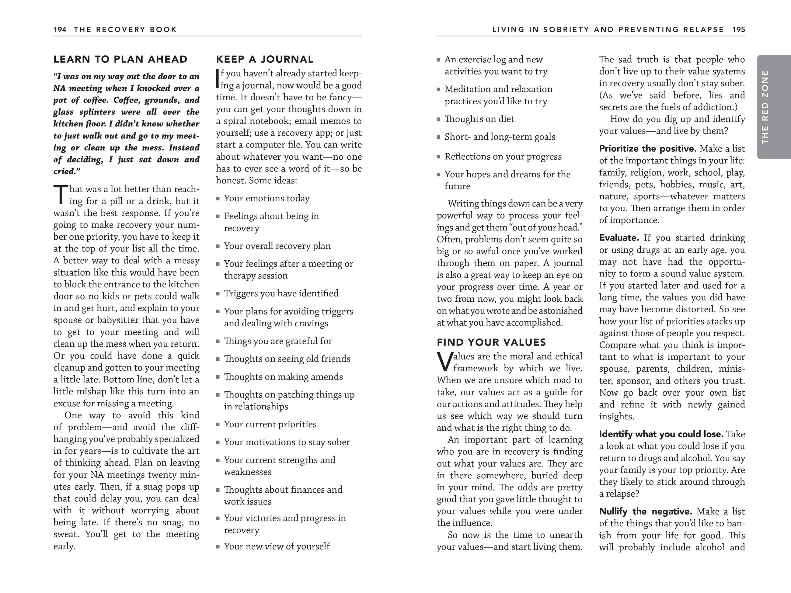 - Relapse Prevention: The Recovery Zone ReCheck, a simple new technique to anticipate and avoid relapses.
