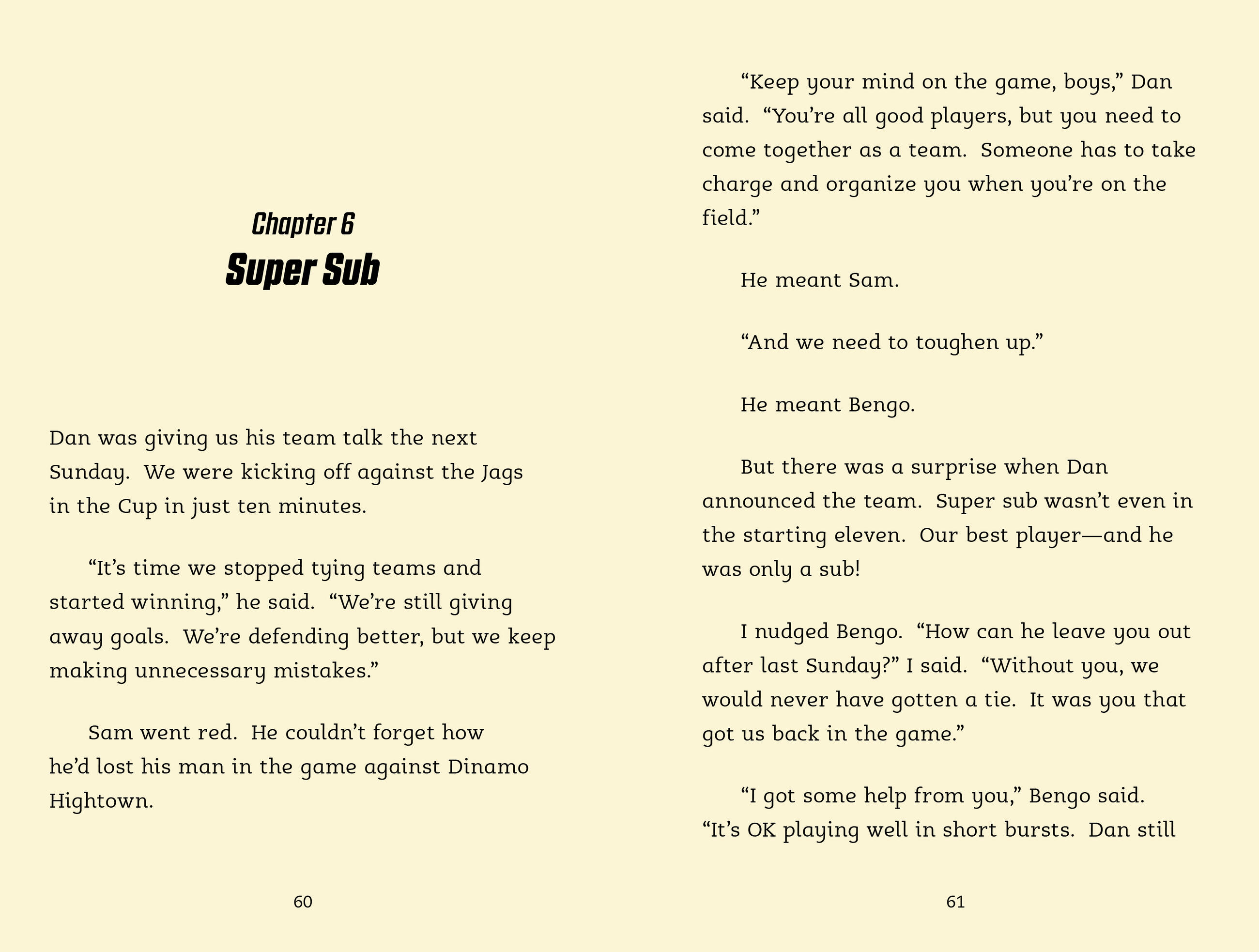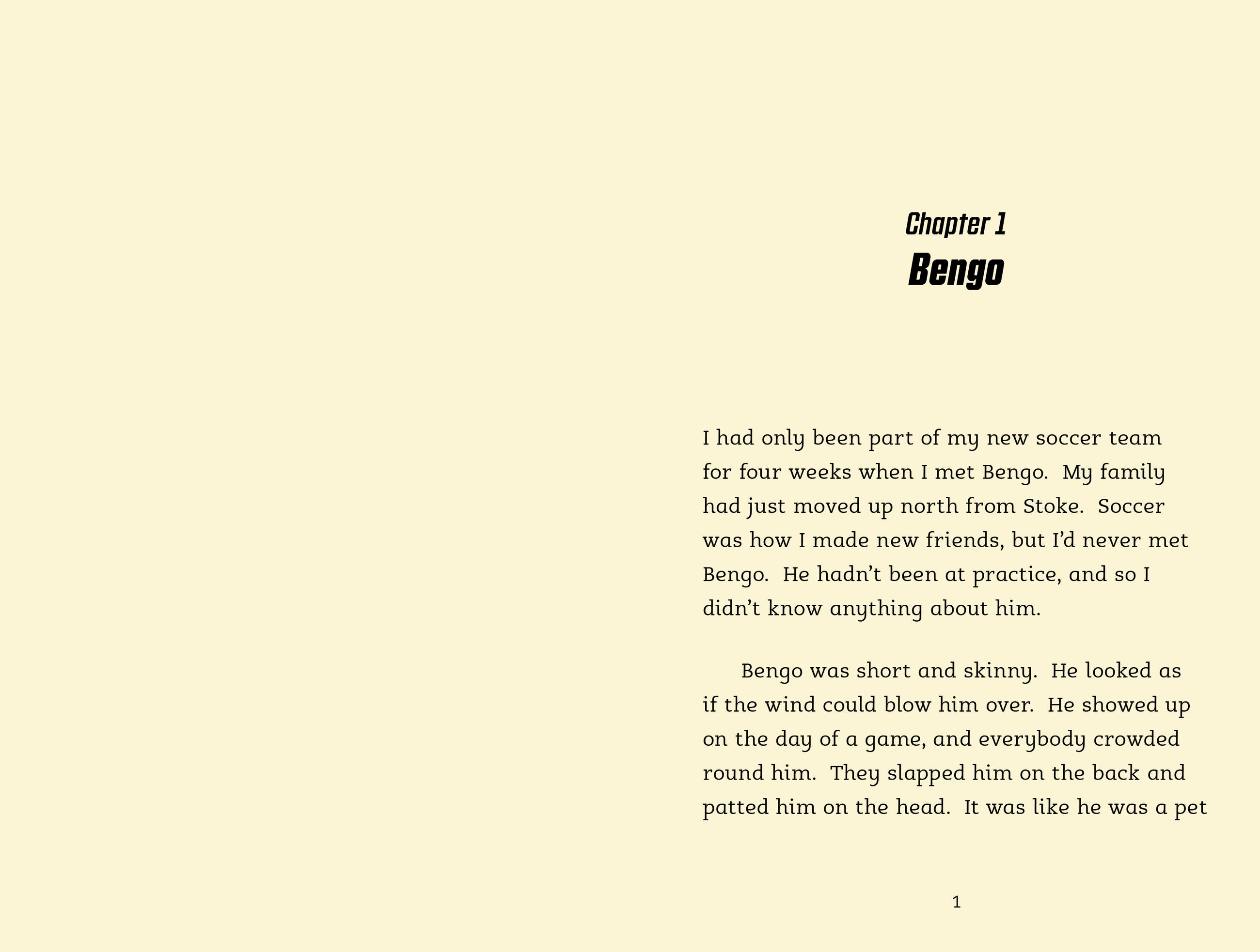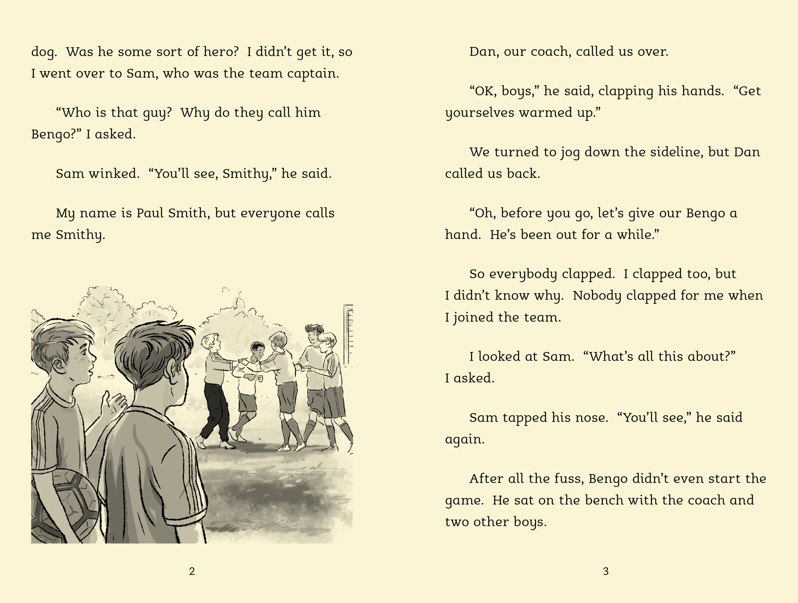 New boy Smithy can’t understand why everyone is so excited about a player on the football team called “Bengo.” Bengo’s been absent for the first few games of the season and starts the next game on the bench, so surely he can’t be that special?