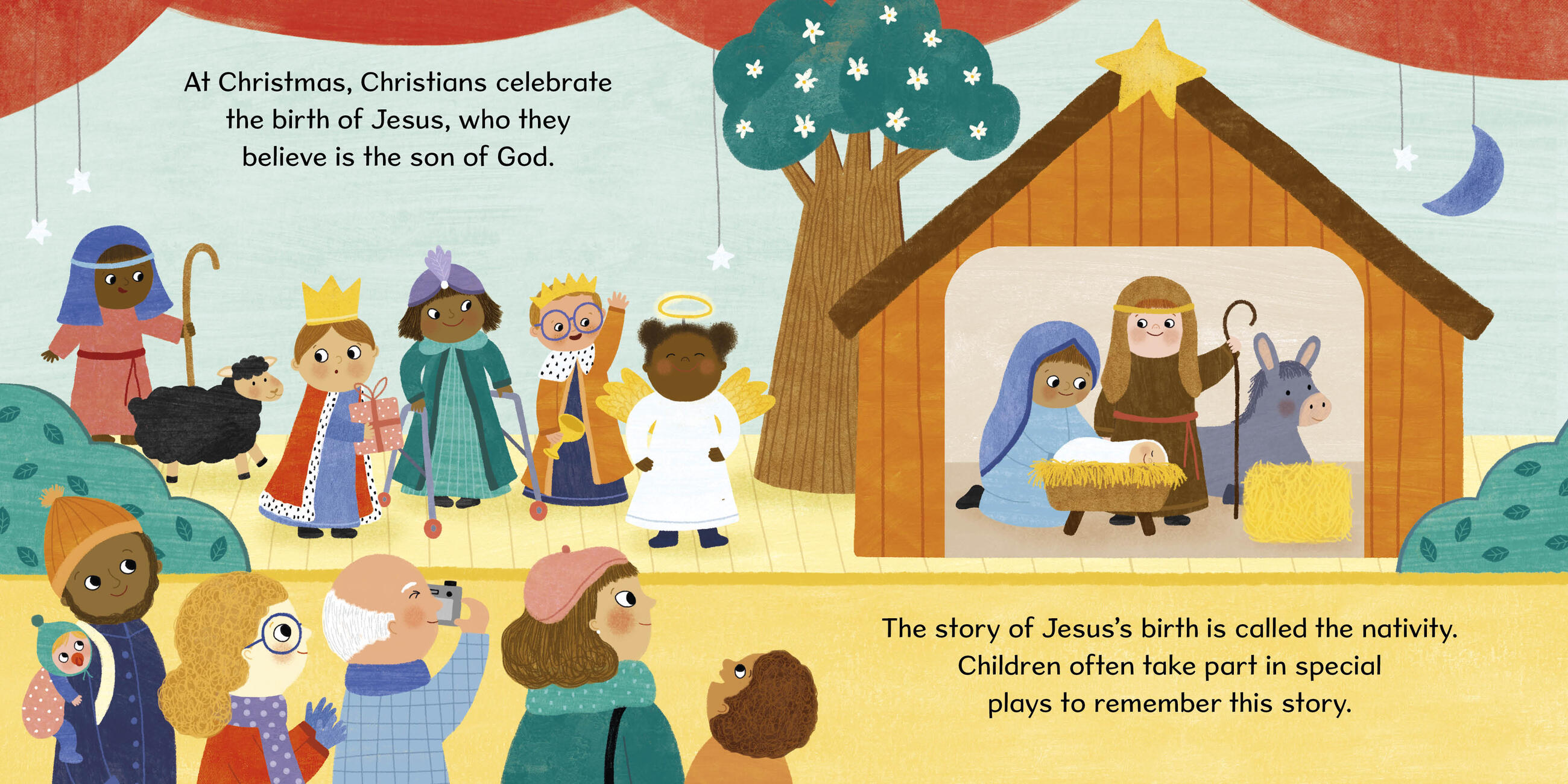 "Detail-rich and hue-saturated illustrations are accentuated with a few peekaboo flaps perfect for the littlest of readers. A concise, nondenominational primer for the Christian celebration of Christmas.”School Library Journal