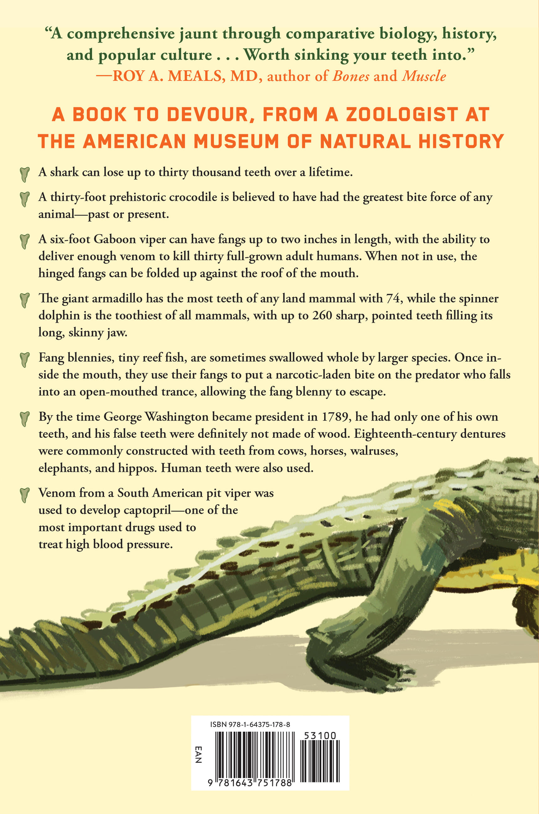 "A zoologist and author makes an unlikely subject — teeth — fascinating in this book you may want to devour in one sitting... You’ll love reading the examples of the ways different species, from dinosaurs to prehistoric humans to vampire bats, have used their teeth to survive and thrive in the world."BookBub