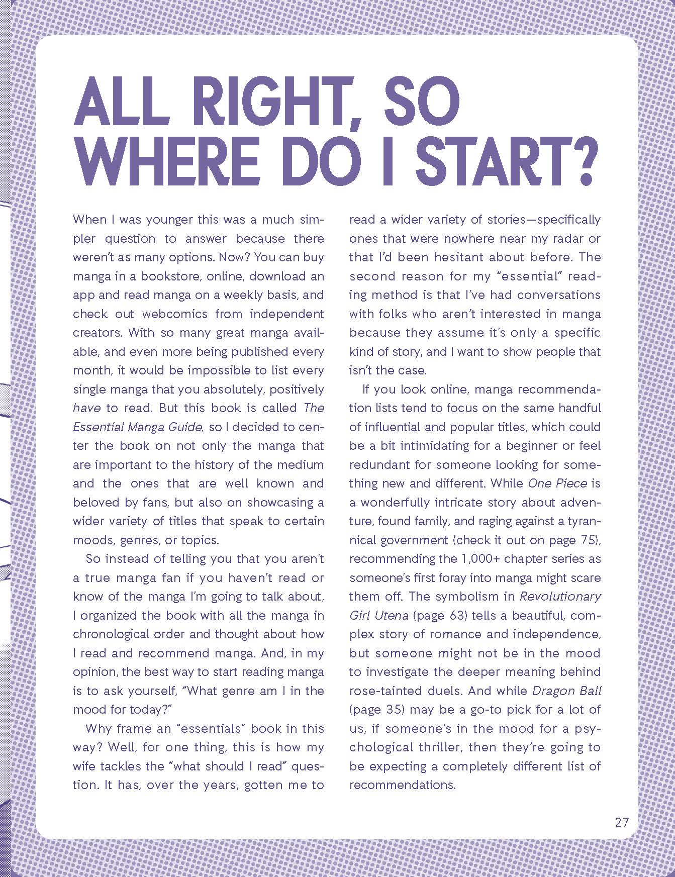 "This guide is vastly rich with information, history, personal influence and opinion, and enough options to not only kick start but fuel someone’s journey into the world of manga for YEARS to come."The Outerhaven