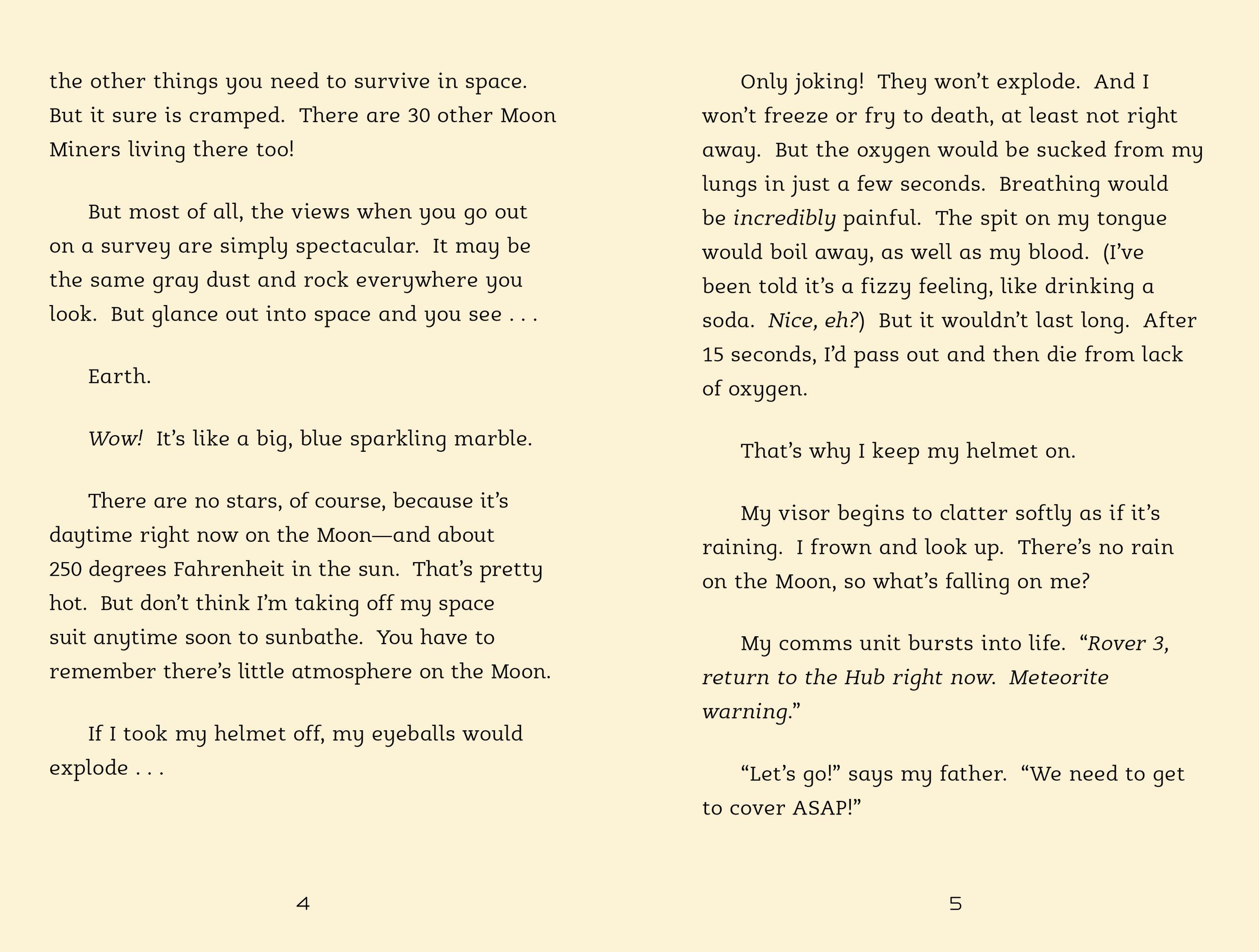 Luna loves living on the moon. She enjoys helping her father—a Moon Miner—on his search for precious minerals and rocks.
