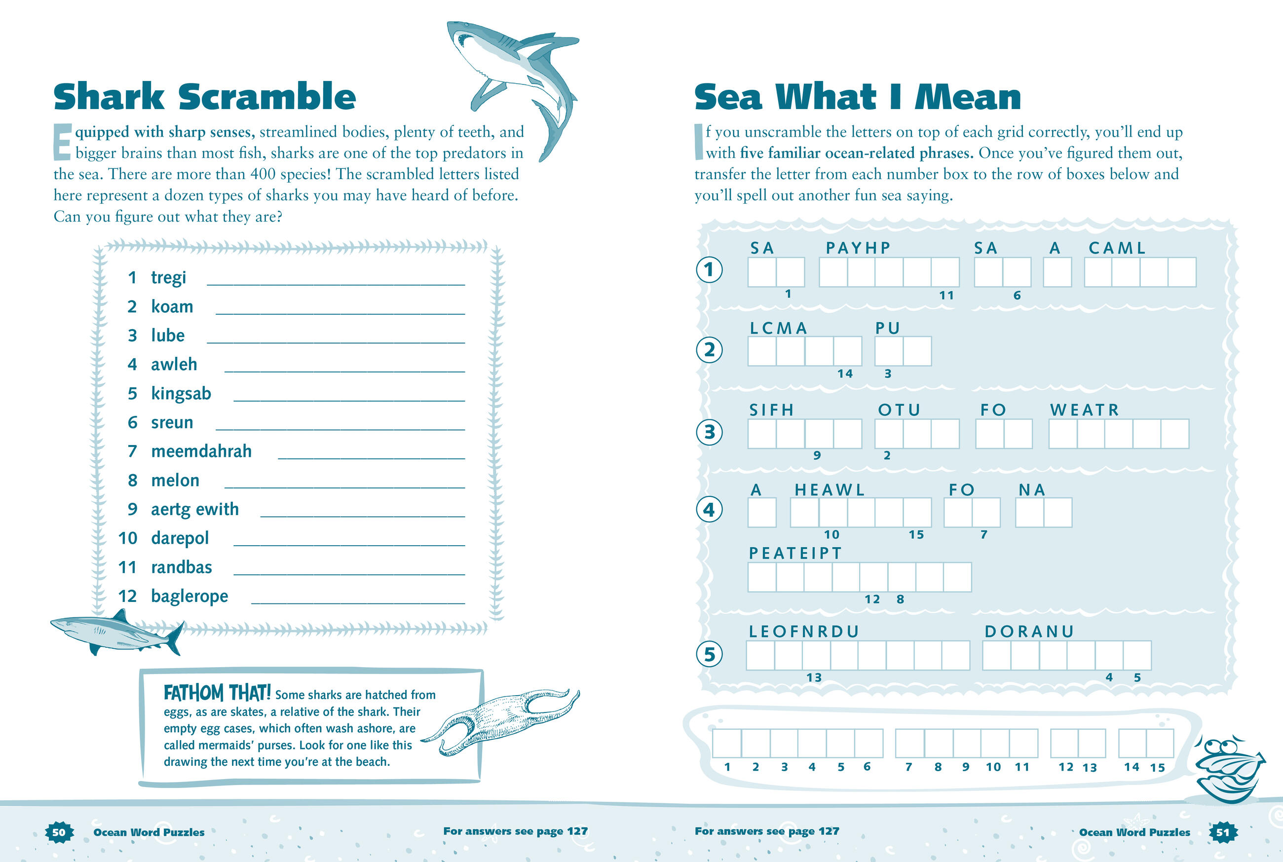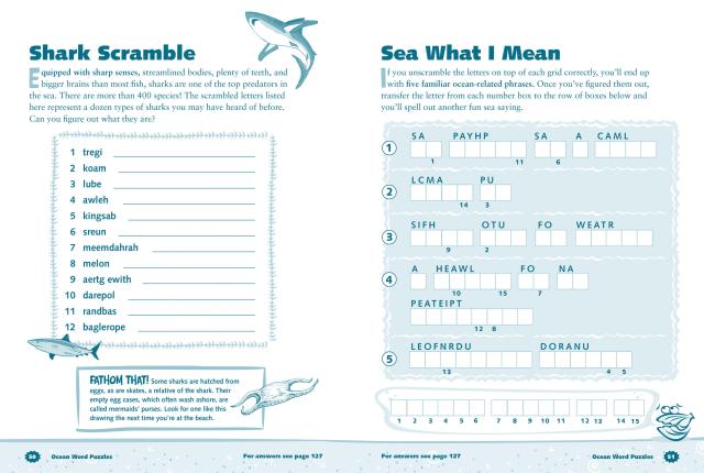 Kids will have hours of fun learning about their favorite sea creatures and ocean phenomena as they work their way through 100 puzzles, games, brainteasers, and jokes in this sea-based activity book. Lead a clownfish through a coral maze; determine which oyster is hiding the pearl; and figure out why sharks are known as lemons, manatees are considered cows, and barbers are simply called fish. It’s a guaranteed whale of a good time!