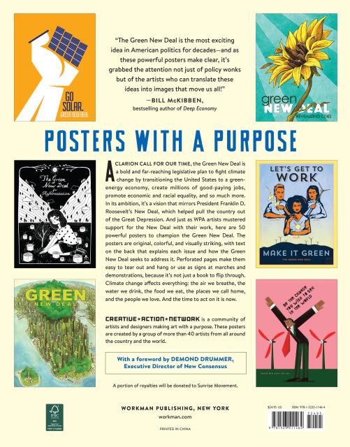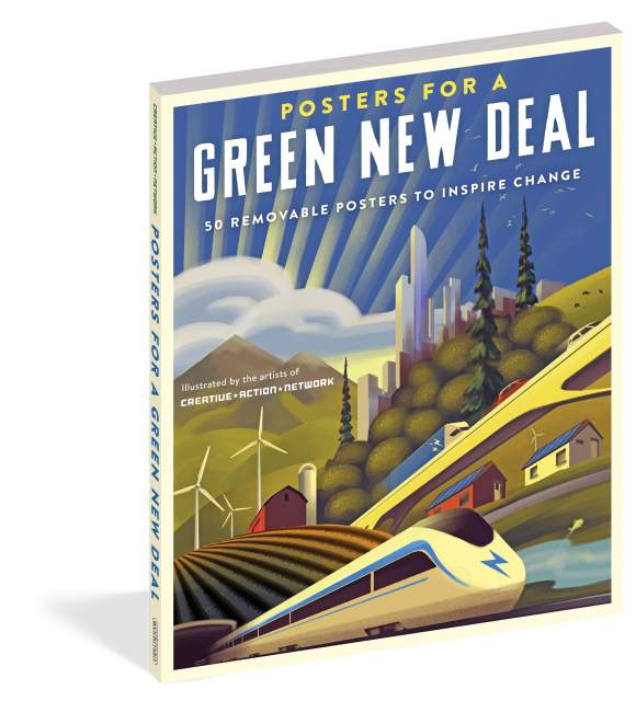 Posters with a purpose. A clarion call for our time, the Green New Deal is a bold and far-reaching legislative plan to fight climate change, create millions of good-paying jobs, promote economic and racial equality, and so much more. In its ambition, it’s a vision that mirrors President Franklin D. Roosevelt’s New Deal, which helped pull the country out of the Great Depression. And just as WPA artists mustered support for the New Deal with their work, here are 50 powerful posters to champion the Green New Deal. The posters are original, colorful, and visually striking, with text on the back that explains each issue and how the Green New Deal seeks to address it. Perforated pages make them easy to tear out and hang or use as signs at marches and demonstrations, because it’s not just a book to flip through. Climate change affects everything: the air we breath, the water we drink, the food we eat, the places we call home, and the people we love. And the time to act on it is now.