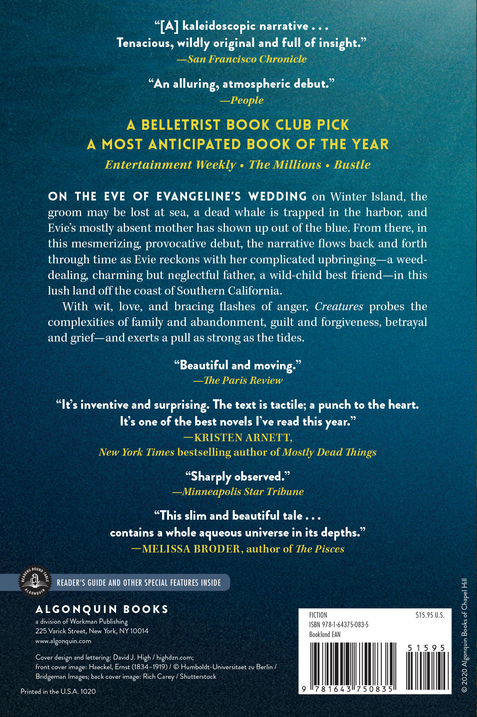 With wit, love, and bracing flashes of anger, Creatures probes the complexities of family and abandonment, guilt and forgiveness, betrayal and grief—and exerts a pull as strong as the tides.