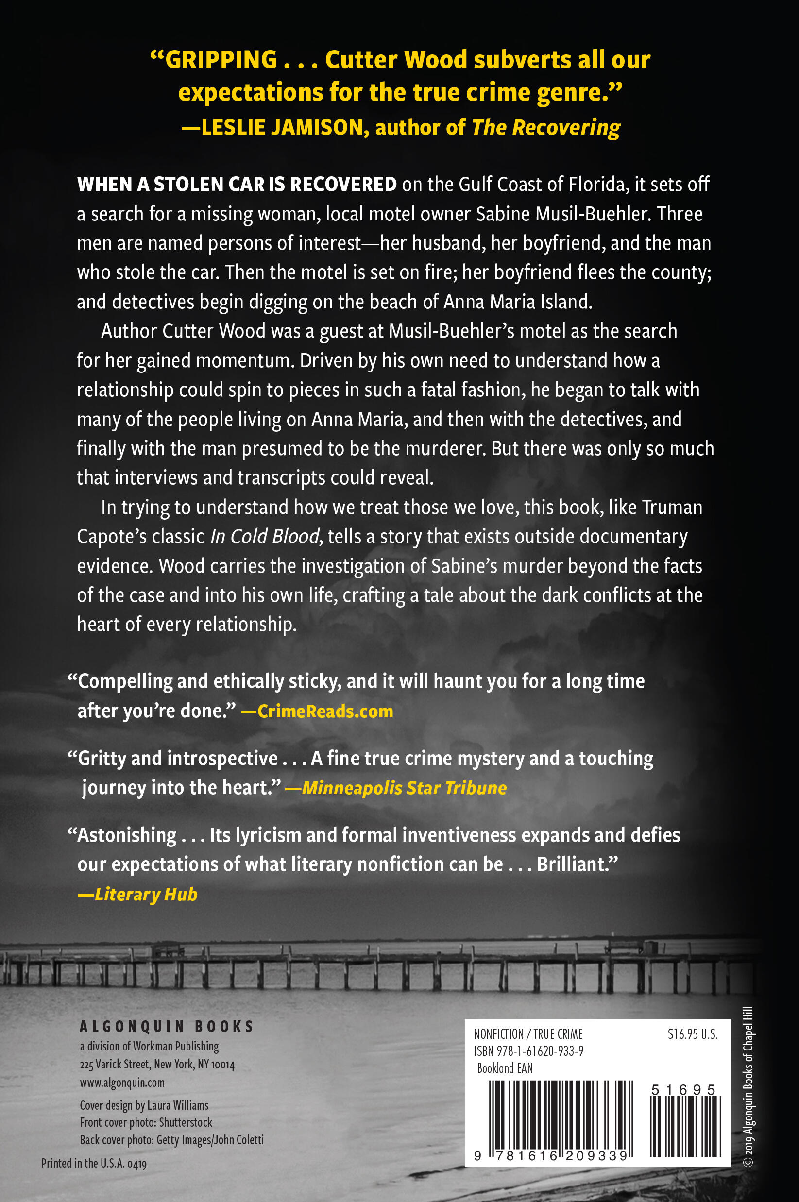 Author Cutter Wood was a guest at Musil-Buehler’s motel as the search for her gained momentum. Driven by his own need to understand how a relationship could spin to pieces in such a fatal fashion, he began to talk with many of the people living on Anna Maria, and then with the detectives, and finally with the man presumed to be the murderer. But there was only so much that interviews and transcripts could reveal.