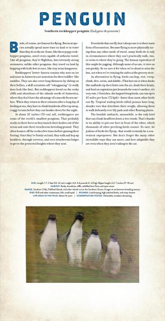 The opening essay focuses on bird behaviors—the weird, and the surprising. The profile accompanying each animal image includes information on each species. It’s an aviary that you can hold in your hands!