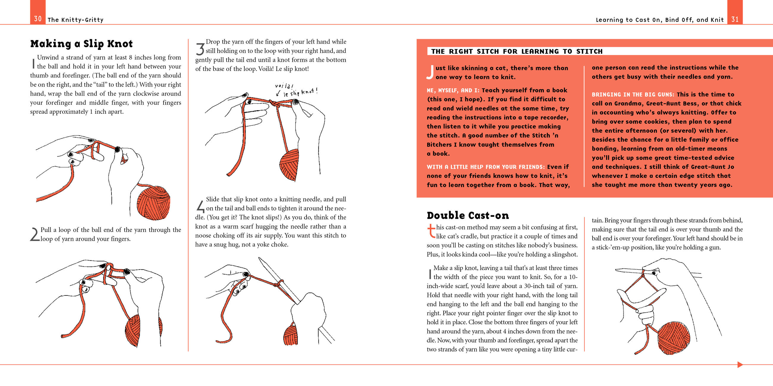 From the tools of the trade to the knitty-gritty of techniques and patterns, all with easy-to-follow step-by-step illustrated techniques. Stockinette stitch, rib stitch, seed stitch. Increasing and decreasing. All the bells and whistles: fringes, tassels, cables, intarsia, crab stitch, and Fair Isle. Plus the stitch doctor’s own special bag of tricks and how to hook up with other knitters. After the how-tos come the why-to: forty hop, stylish patterns, as good for beginners as they are for purely pros.