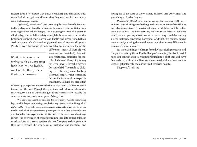 A how-to, a manifesto, and a wise and reassuring companion for parents of neuroatypical children, who often feel that they have no place to turn, Differently Wired offers 18 paradigm-shifting ideas—what the author calls “tilts”—that will change everything, including how to Get Out of Isolation and Connect, how to Help Your Kids Embrace Self-Discovery, and how to Show Up and Live in the Present. And through theses “tilts,” how to stay open, pay attention, and become an exceptional parent to your exceptional child.