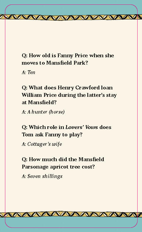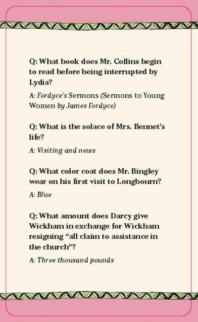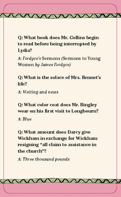 - Deluxe set: Includes 100 full-color custom illustrated cards featuring 400 puzzling questions to put your knowledge of Austen’s writings and life to work, as well as a double-sided fold-out poster with background information and character portraits