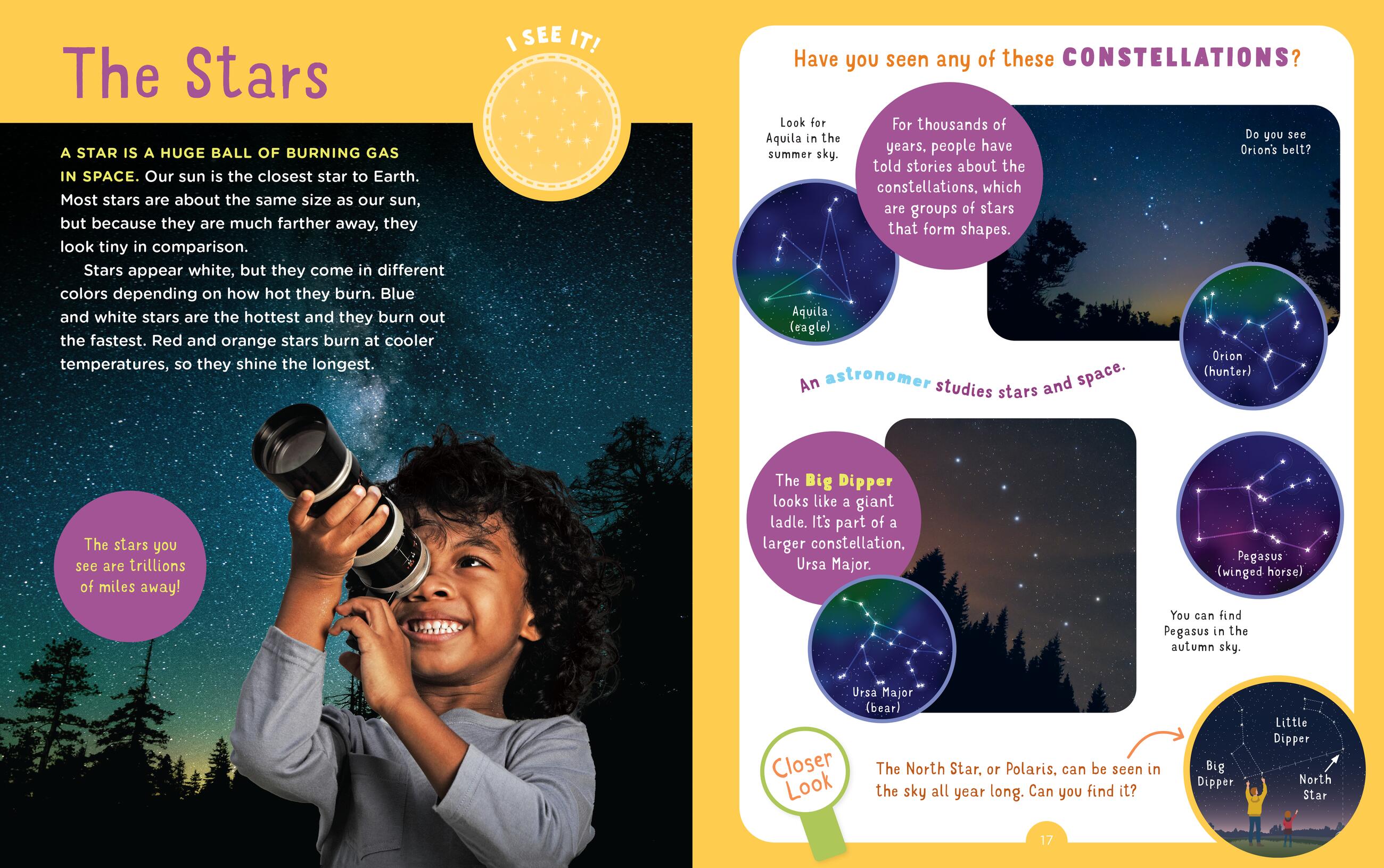 Step outside after dark and explore the outdoors! Packed with nighttime scavenger hunts, flashlight games, and field guides for nocturnal animals, insects, and birds, this nighttime activity book—complete with a real magnifying glass, stickers, and a fold-out journal—is the perfect take-along nature exploration guide for kids aged 4 to 8. In the eighth book of the Backpack Explorer series from the Editors of Storey Publishing, junior naturalists search for owls, bats, salamanders, stars, planets, and more. Backpack Explorer: Night Walk is packed with prompts and activities, including 12 interactive field guides, sensory scavenger hunts, activities such as learning about the phases of the moon, listening to the noises of the night, and looking for constellations in the sky. With a real magnifying glass, 50 stickers, and a log for recording night finds, this book is perfect for outdoor-loving kids and their nature adventures after dark.