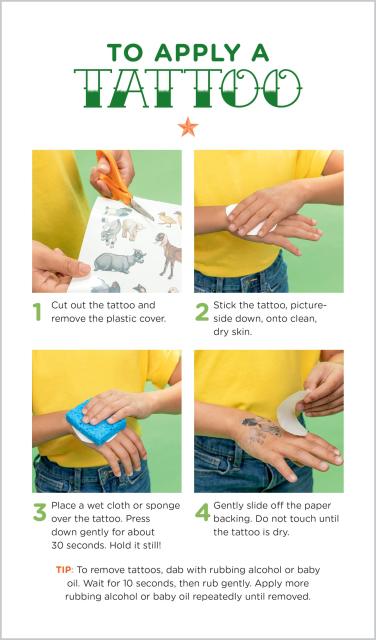 Realistic art: Life-like, detailed illustrations make these temporary tattoos one-of-a-kind.Educational: Each tattoo is paired with a fun fact. Learn about goats and sheep, horses and cows, ducks and chickens, and many other friendly farm animals.
