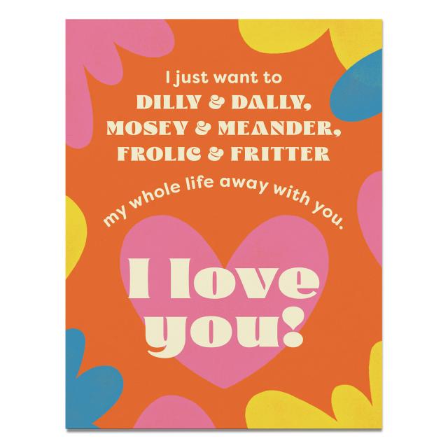 There is nothing better than a good old-fashioned dilly & dally and mosey and meander… know what we mean? This sweet card lets your someone special know how much the little moments mean to you, without being so sweet they get an eye-cavity reading it.Â