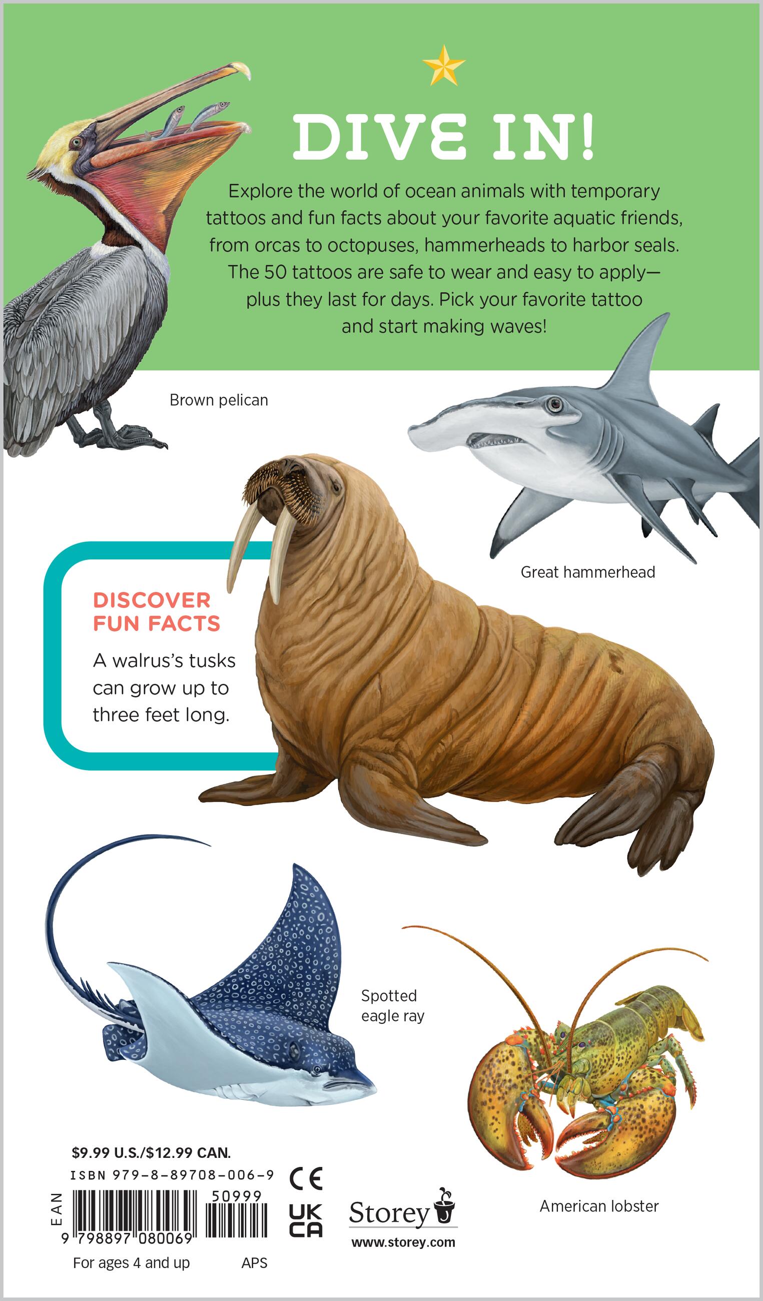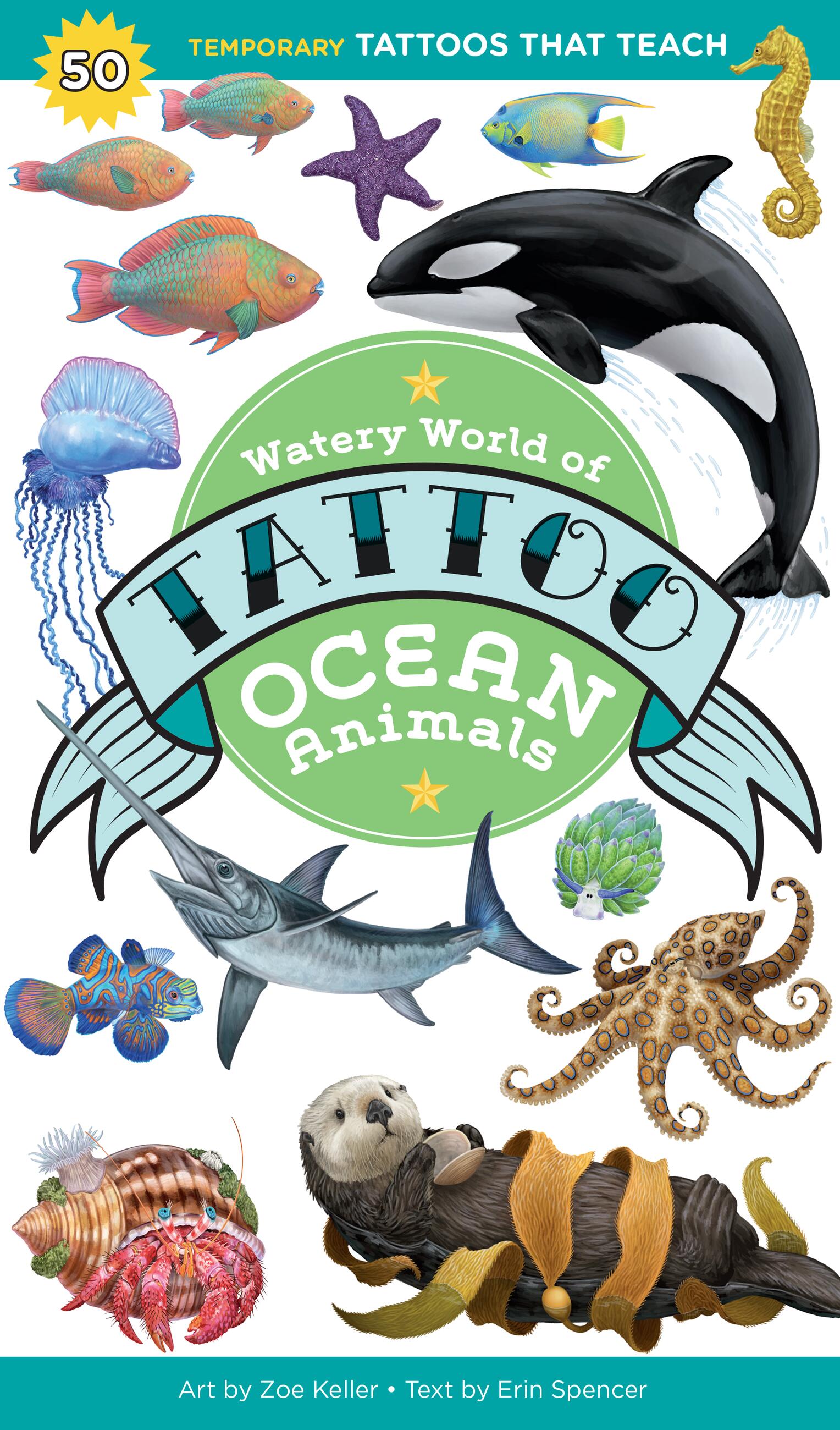 Nature-loving kids can display their favorite marine animals on their arms and legs with this collection of 50 colorful, kid-friendly, temporary Tattoos that Teach, featuring whales and walruses, fish and birds, cephalopods and crustaceans, and more. The tattoos are easy to apply with just a bit of water and last for up to a week. In addition to the tattoos, the book features fun facts about each ocean dweller. Kids will love showing off these temporary tattoos with friends.