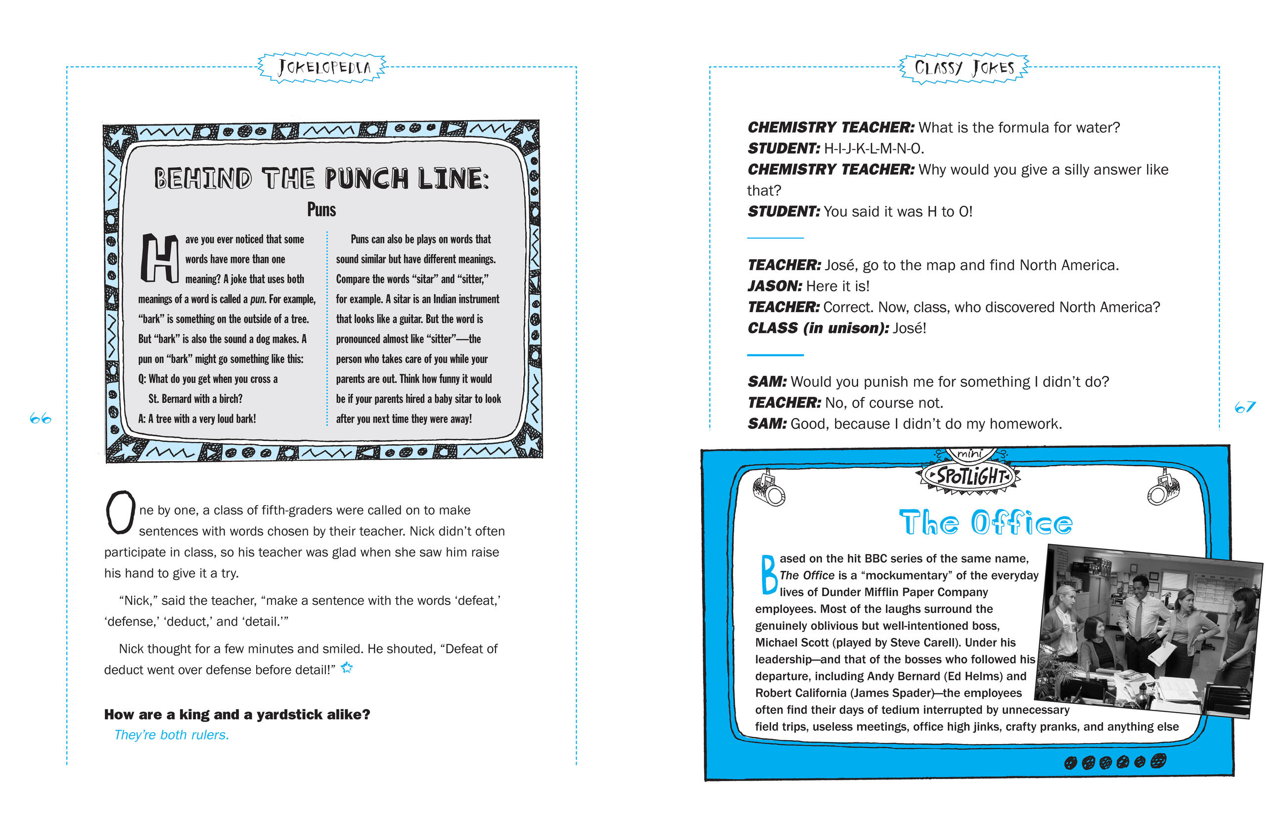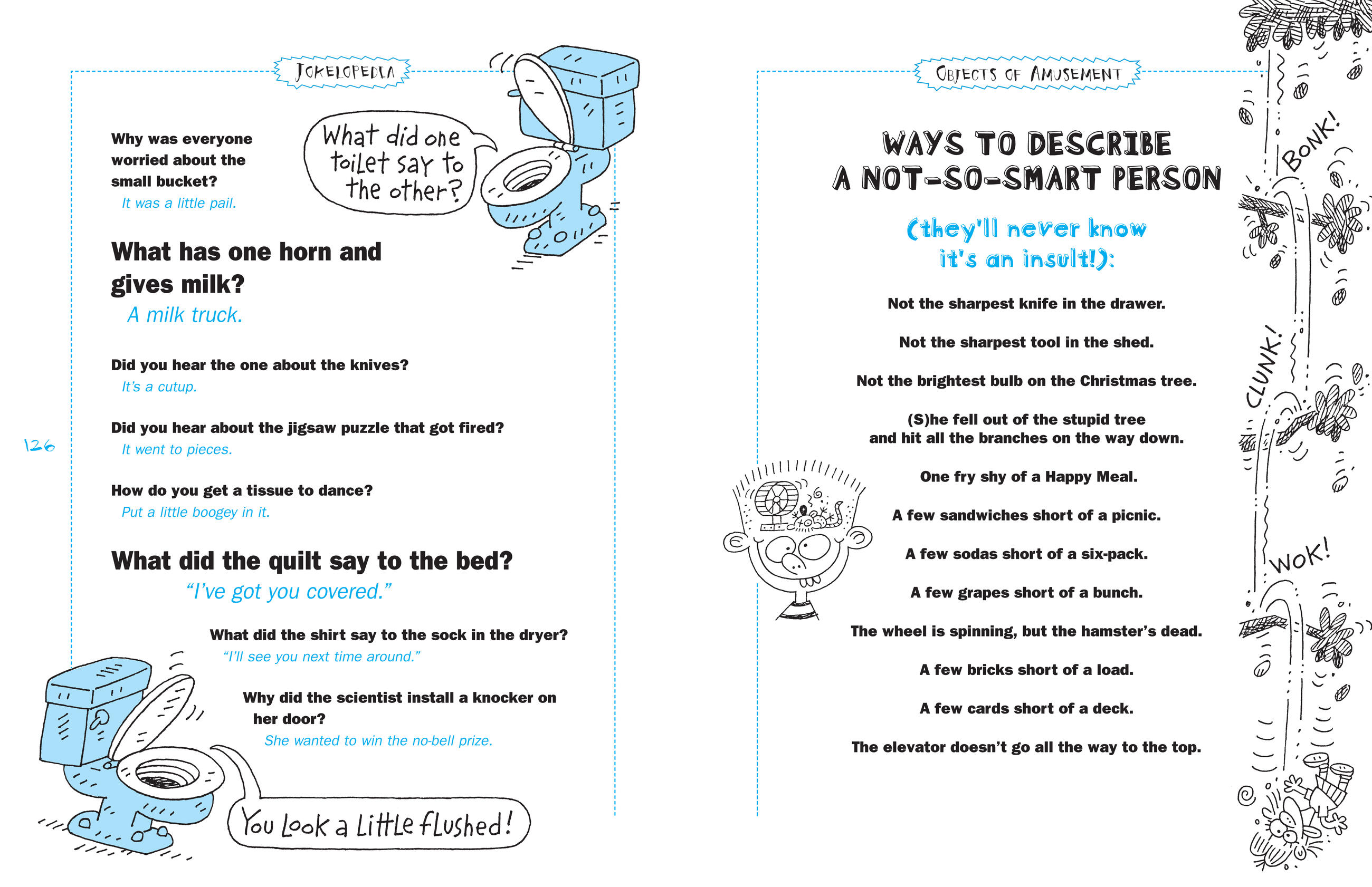 And for all aspiring comedians, there are joke-telling pointers and tips, funny facts, and spotlights on comic TV shows, books, and actors, from Steve Carell to Tina Fey to SpongeBob Squarepants. It’s the ultimate gift for the incurable jokester.
