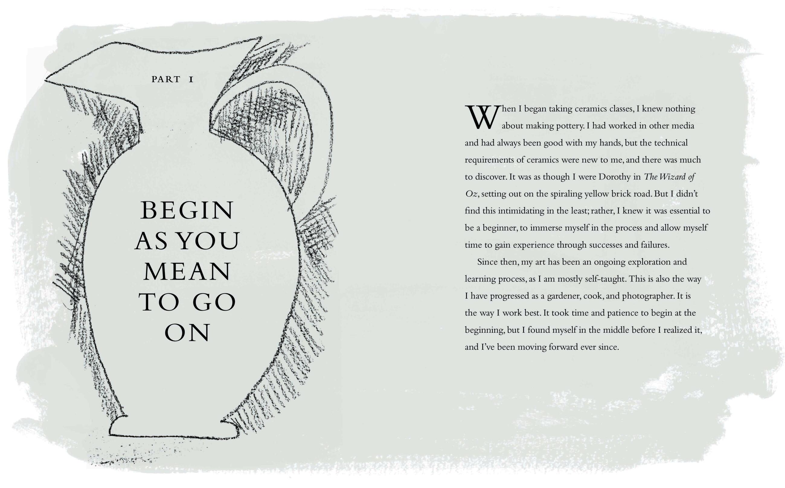 “The book is filled with Palmer’s essays detailing her inspiration, processes, and even failures, interspersed with encyclopedic passages on how to build a pot, create a floral arrangement, or cultivate bulbs (particularly her favorite, dahlias). Peppered within are homey recipes for dishes like roast chicken or almond cake, artfully photographed on some of Palmer’s handmade servingware, as well as sections on companion projects like beekeeping.”