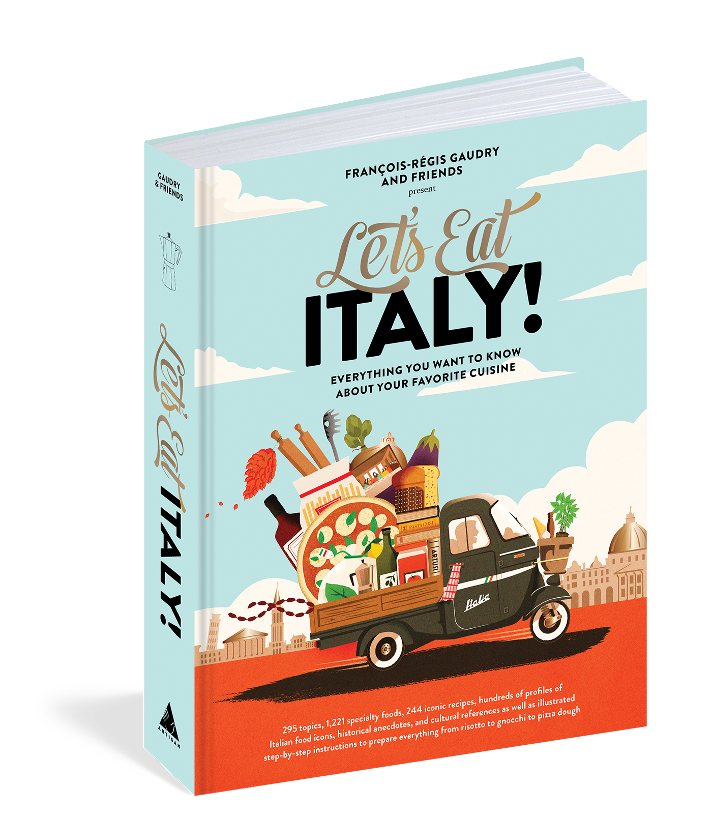 “Gaudry takes armchair travelers and gastronomes on a tour of one of the world’s best-loved cuisines in Let’s Eat Italy! Along with well-curated recipes, this gorgeous coffee table book features stunning infographics, maps and tributes to all things Italian—from pasta to gelati to wine.”Atlanta Journal-Constitution “A design treasure: comprehensive and visually diverse, yet beautifully unified and appealing. The oversized trim and variety of visual content—food photographs, archival photographs, maps, fine art, spot illustrations, portraits, charts, to name just a few—are staggering, but never feel overwhelming. . . . Let’s Eat Italy! succeeds in feeling as exciting, rich, and complex as Italian cuisine itself.”—Stained Pages News “This gastronomic homage to Italy starts at a simmer with a smart user’s guide and then bubbles with recipes, profiles, and ingredient spotlights. Recipes for amatriciana, carbonara, baba, and lesser-known specialties are researched and authoritative. Profiles feature cultural traditions and achievements, including Carlo Petrini and the birth of the slow food movement. These pages explore intriguing backstories of prized ingredients like basil, ‘the royal herb’; olive oil; and famous regional cheeses. There is information on proper techniques for selecting, making, and eating Italian foods including how-to’s for choosing a fig or a chocolate spread, making risotto, and eating spaghetti. A buffet of photographs, artful graphics, maps, and sidebars make for informative and inspiring browsing. Let’s Eat Italy! is a fantastic read for foodies and a luscious culinary reference. ‘Why did Cucina Italiana conquer the world?’ If pasta, pizza, and Parmesan haven’t already answered that question, this culinary compendium certainly does.” —Booklist