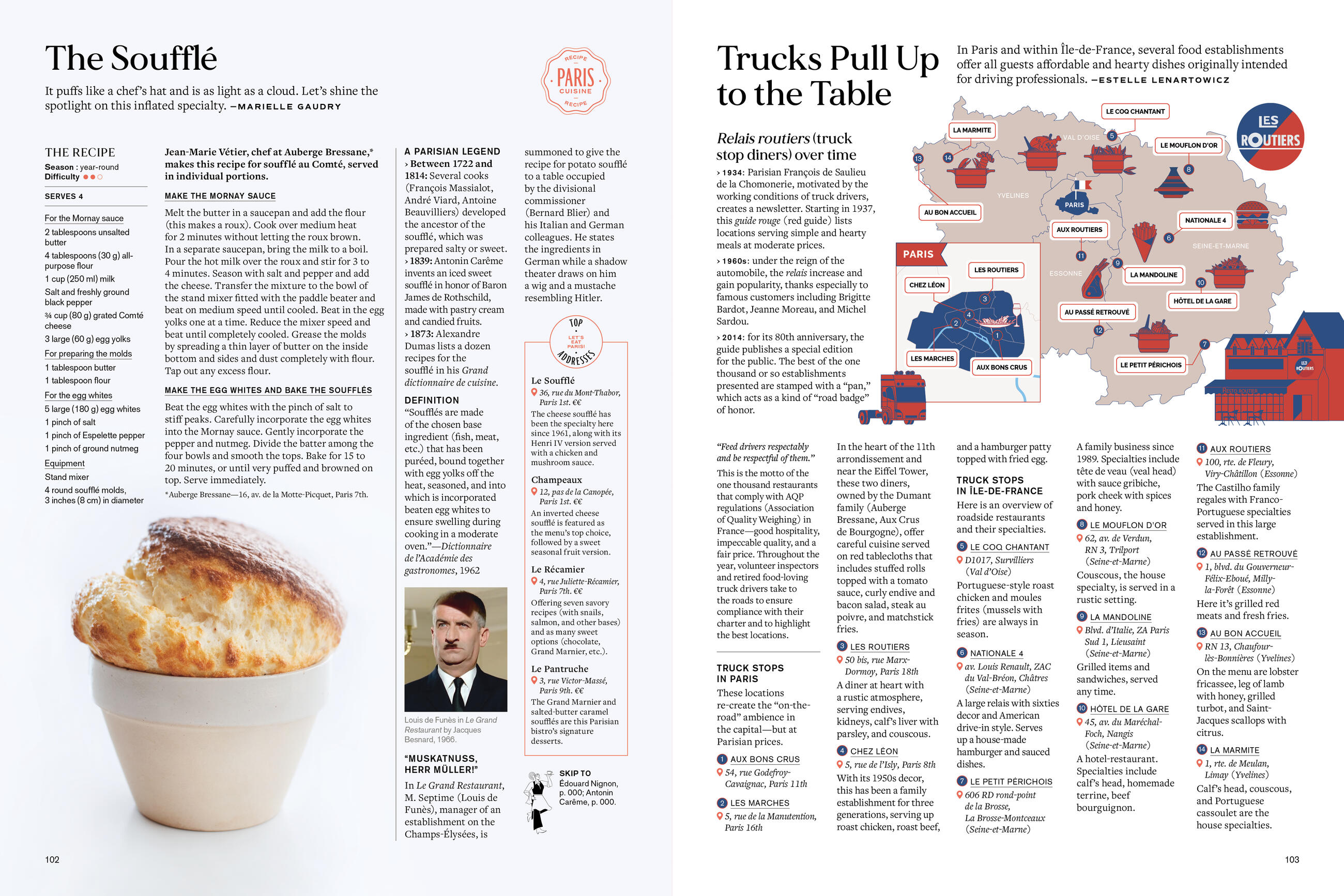 Chockful of infographics, recipes, photographs and illustrations, biographies, anecdotes, and quirky takes on unexpected trends, present and historical, Let’s Eat Paris! is the ultimate food lover’s guide to the ultimate food lover’s city. Read a timeline of the brasserie. An ode to the frites of Paris. Profiles of iconic restaurants: Tour d’Argent, Fouquets, L’ami Louis, La Coupole, Le Procope. Behold the sacred croissant and the twelve best places to find one. The tradition of hidden private dining rooms and other love nooks. Café Flore vs. Les Deux Magots. Best imports: kebabs, burgers, pizza. Recipes for Leeks Vinaigrette, Tournedos Rossini, Boeuf Bourguignon, Jambon-Beurre (and where to find the ones worth eating). A Hemingway tour. A guide to street markets. Art Nouveau or Art Deco? And tres, tres more.