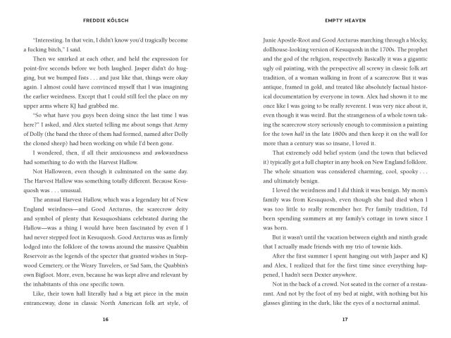 Empty Heaven is a propulsive and original love story, a darkly funny tribute to the power of queer found family, and a haunting exploration of the hidden horrors of beautiful places.