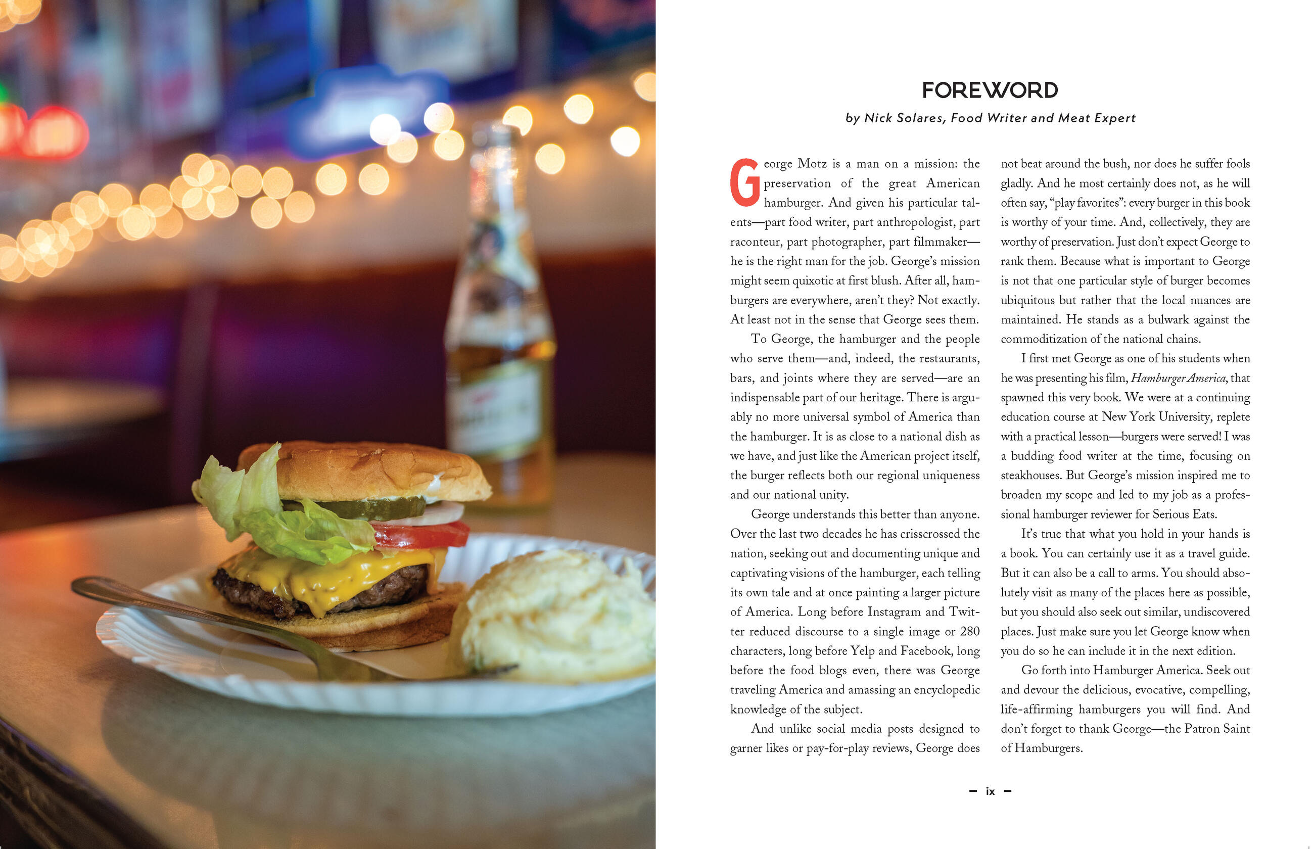 Organized by state, this engagingly written guide takes readers into the kitchens, booths, and drive-throughs of some of the most delicious and interesting burger establishments across the United States including local favorites like Val’s Burgers (CA), Taylor’s Maid Rite (IA), Pete’s Hamburgers (WI), Jimbo’s Hamburger Place (NY), Boots Burger (TX), Redamak’s (MI), and Owl Bar & Café (NM). Each entry is complete with both colorful anecdotes and practical information (location, website, hours of operation, and more), making this volume as practical for planning your own burger-themed roadtrip as it is inspiration for a mouthwatering cookout at home. Whether you’re an armchair traveler, a serious connoisseur, a fan of George’s own hugely popular New York City restaurant (also named Hamburger America) or a curious adventurer, Hamburger America will inspire you to get on the road and get back to food that’s even more American than apple pie.