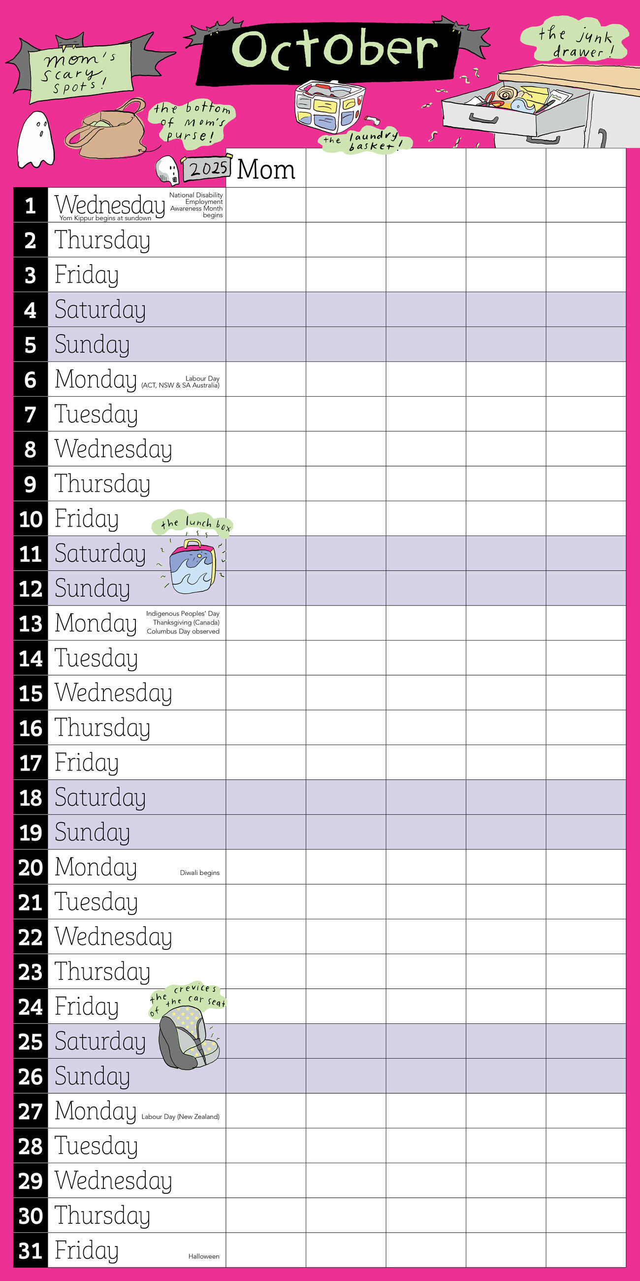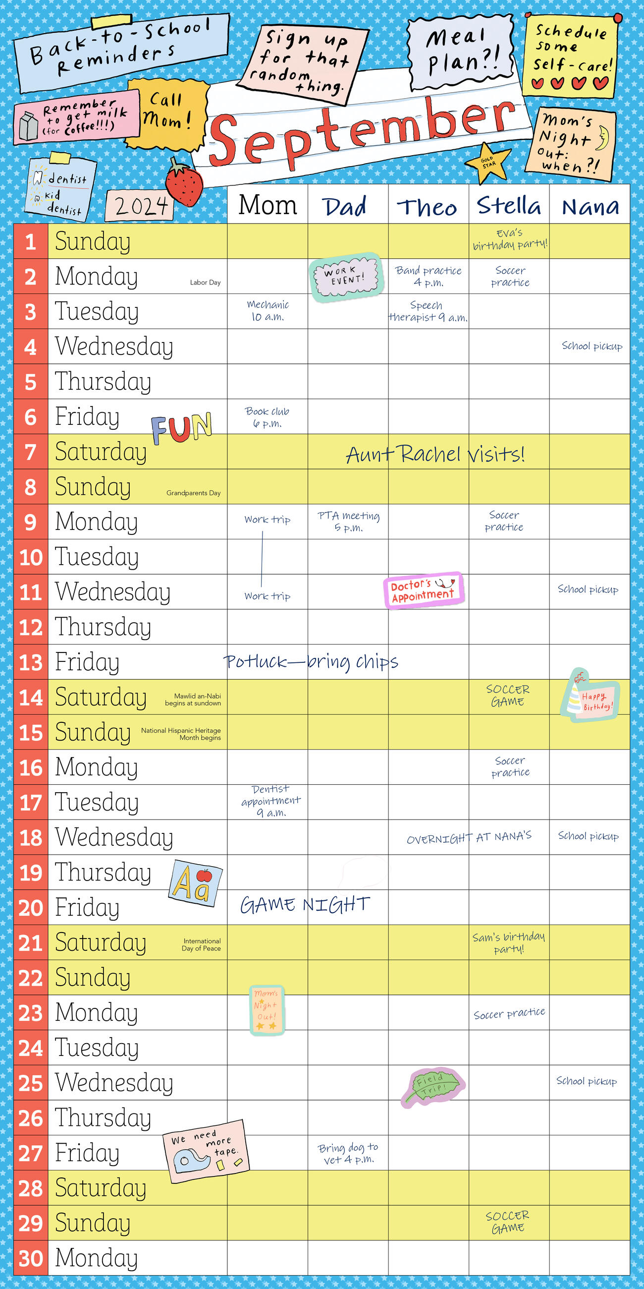 Keep track of up to five family members’ schedules with this 17-month calendar featuring a drop-down pocket, stickers, and charming illustrations by Grace Farris!