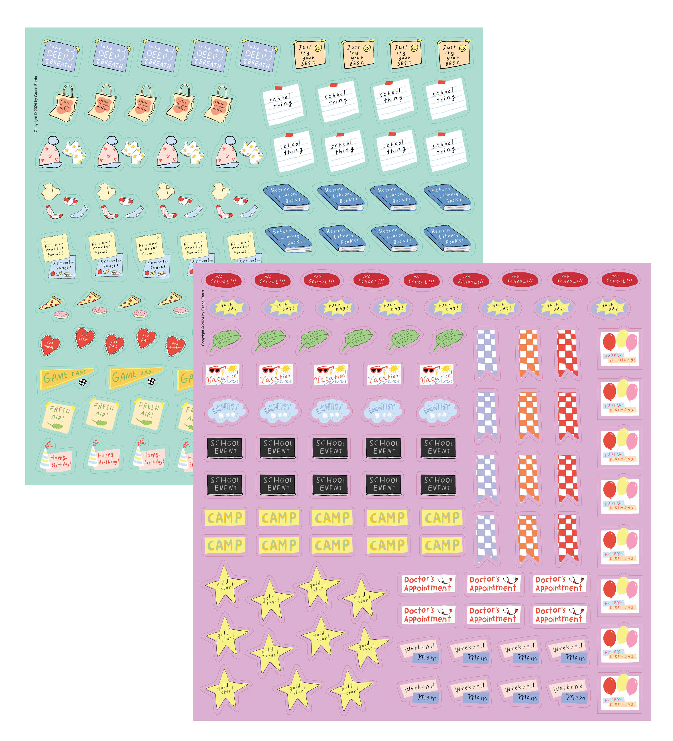 - FUNCTION AND FUN: Useful, funny, and relatable! Author Grace Farris’s illustrations bring the humor, and a drop-down storage pocket and two sheets of stickers bring the practicality.