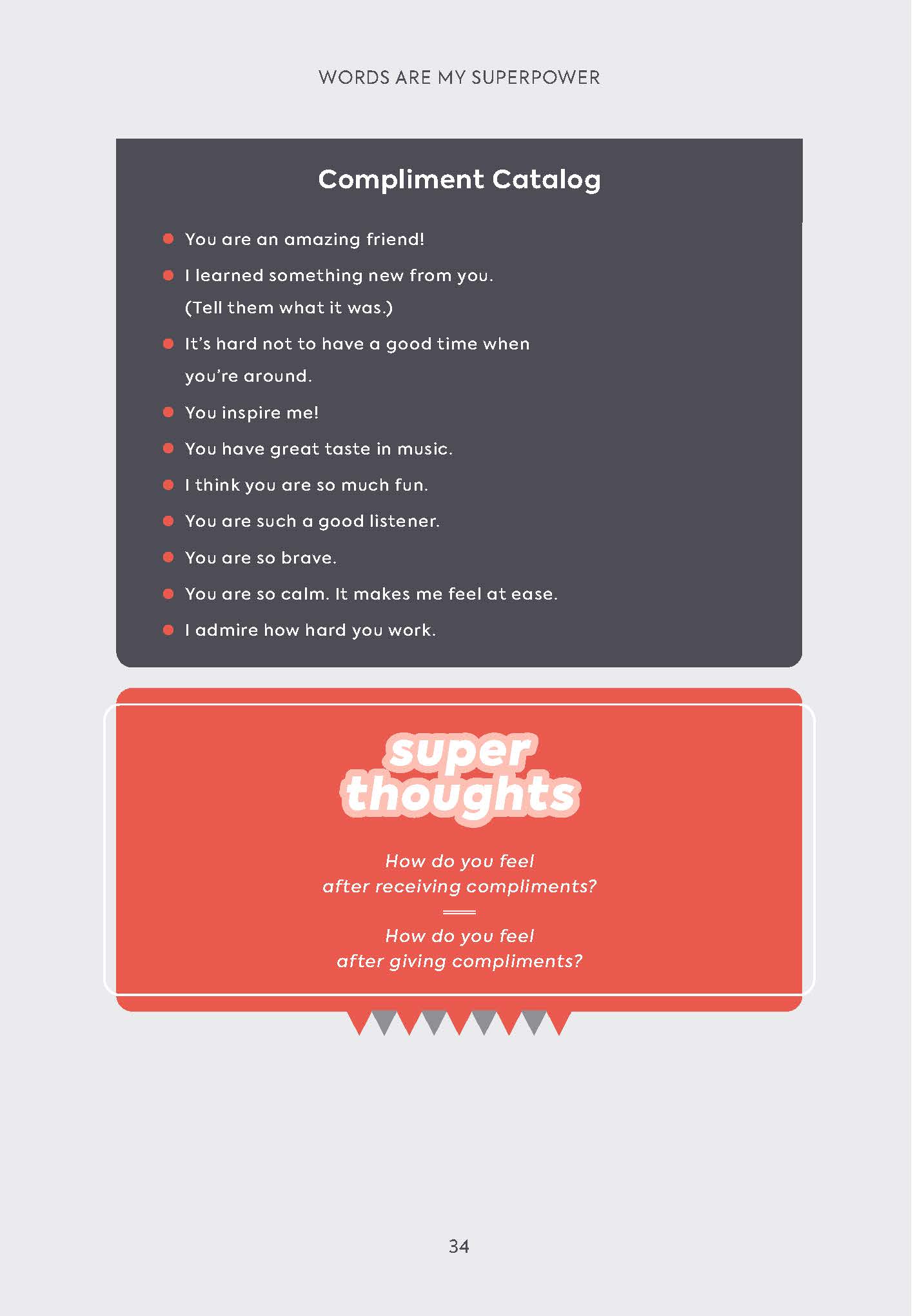 “The metaphorical framework of superpowers not only engages young readers but also instills a sense of agency, encouraging them to harness the power of language to shape their emotional landscapes. As they journey through the pages, readers are not only guided through the intricacies of their feelings but also empowered to rise above them, armed with the strength of words…a vital resource for tweens and teens embarking on the tumultuous journey of self-discovery.”School Library Journal, starred review