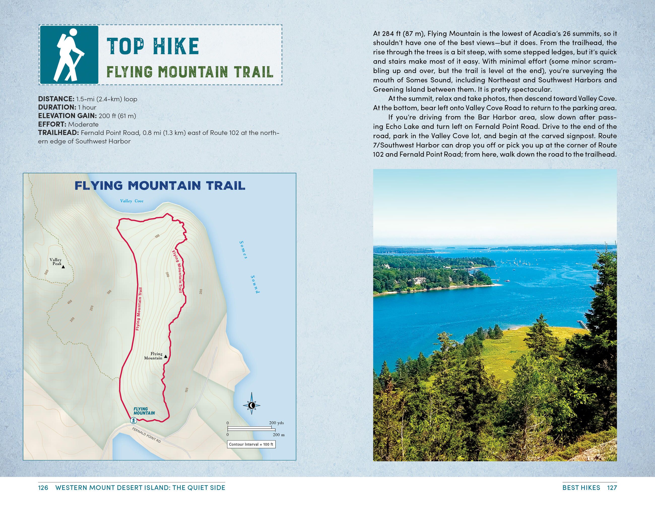- The top hikes in Acadia: Whether you’re looking to stretch your legs for a couple hours or challenge yourself to a full day hike, you’ll find trailheads, detailed trail descriptions, individual maps, mileage, and elevation gains