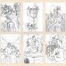 - 50 deluxe coloring postcards: This set includes 50 different designs on thick, colorable postcards (3-3/4″ x 5-1/2″), each featuring a unique original illustration by artist Mélanie Bourgeois.