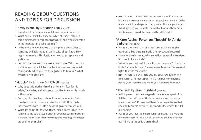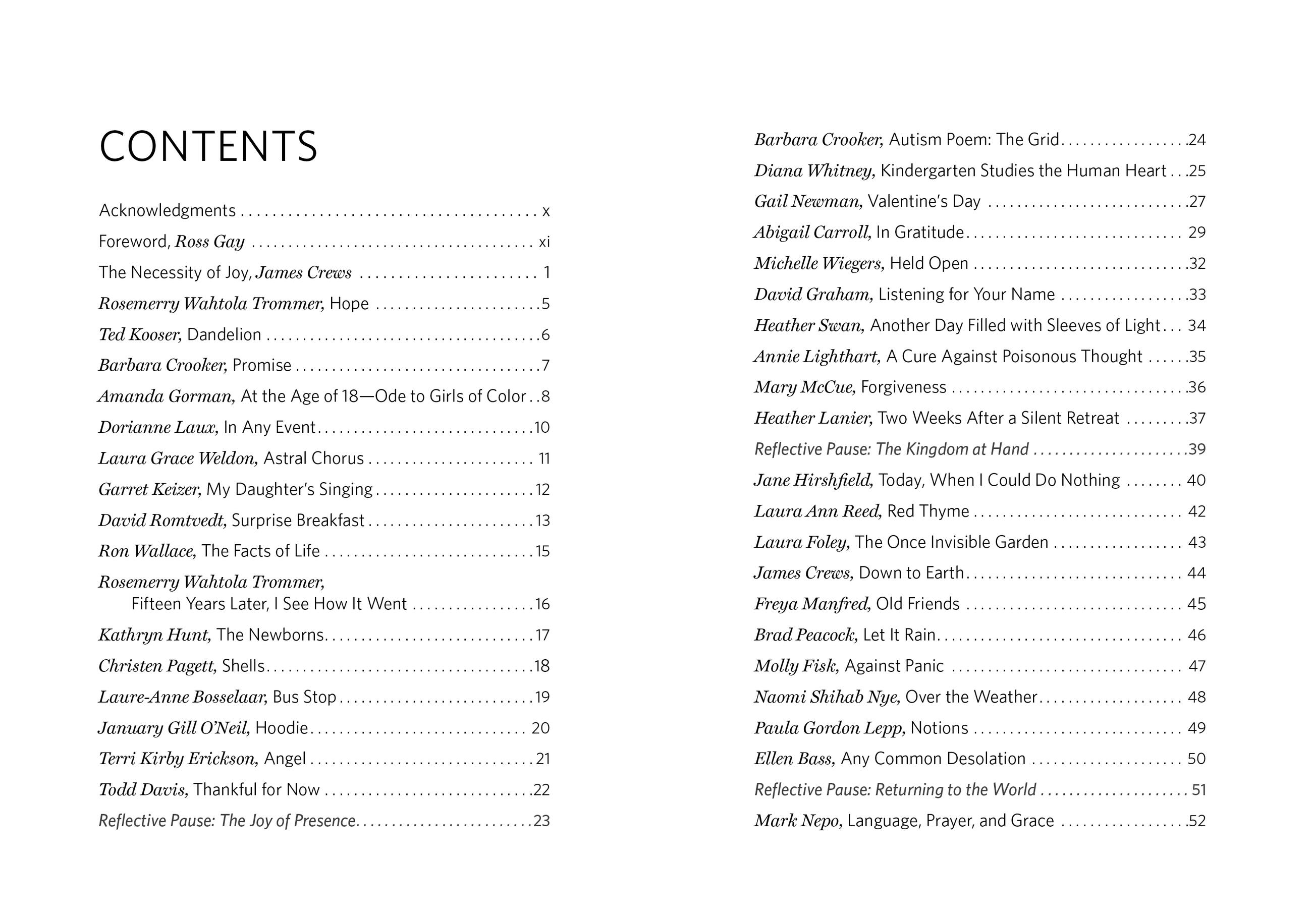 "Readers looking for poetic antidotes to today’s chronic anxiety and frenetic news cycle might enjoy turning to this new and highly readable collection. Spend some time with joy and gratitude through deeply felt work from some of poetry’s most trusted voices including inaugural poet Amanda Gorman, Joy Harjo, Tracy K. Smith, Ellen Bass, Ted Kooser, Naomi Shihab Nye, Jane Hirschfield, and others often featured in the pages of Orion. Interspersed with invitations to write and reflect, this book is designed for discussion and is classroom-ready." — Orion Magazine