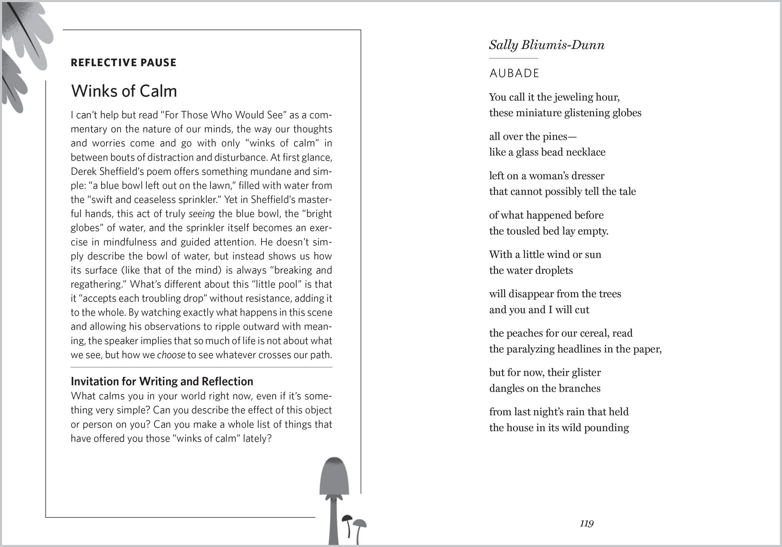 Readers are guided in exploring the meaning and essence of the poems through a series of reflective pauses scattered through the pages and reading group questions in the back. This anthology offers the perfect intersection for the growing number of readers interested in mindful living and bringing poetry into their everyday lives.