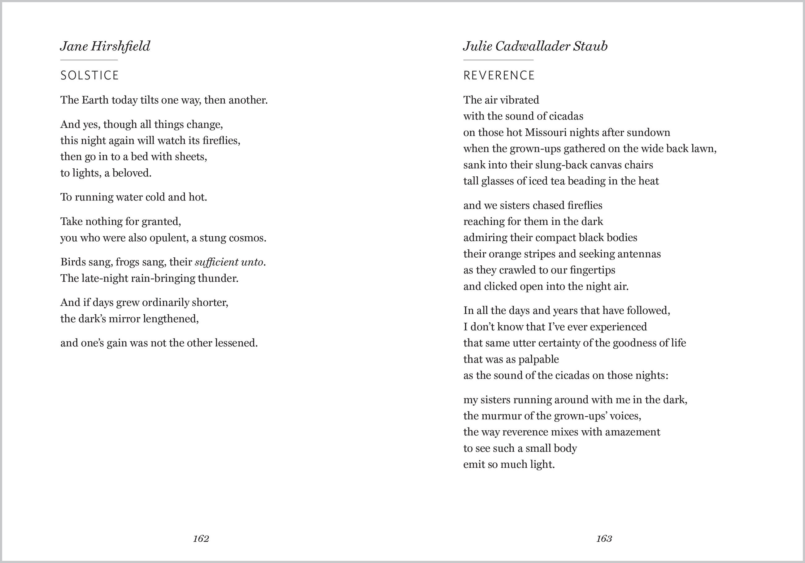 “Reading these hand-selected poems of wonder and awe is like being handed a bowl of ripe, sweet fruits—so enjoyable, so surprisingly different, so deeply nourishing.”Rosemerry Wahtola Trommer, author of All the Honey and Hush