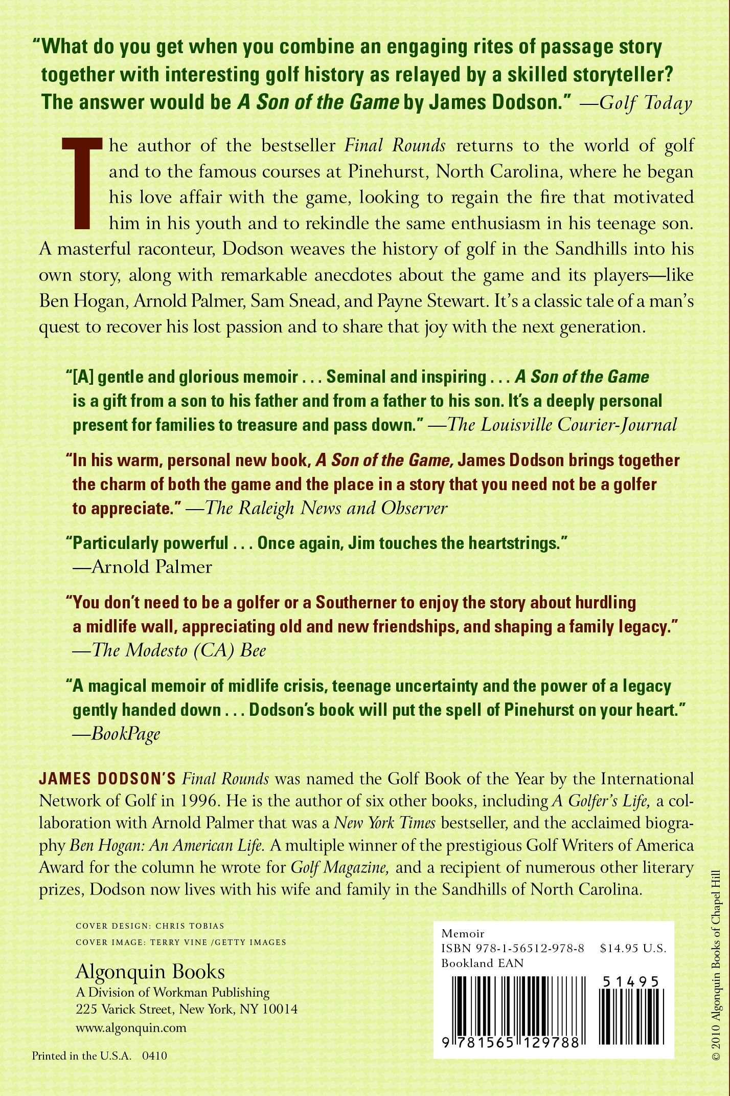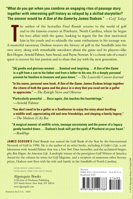 "In his warm, personal new book, A Son of the Game, James Dodson brings together the charm of both the game and the place in a story that you need not be a golfer to appreciate . . . Dodson's gift is in feeling and sharing the attachment to a game that is as bewitching as it is maddening . . . [His] book is time well spent. It captures the spirit of a game and a place that has captured so many of us." —The Raleigh News and ObserverBookPage