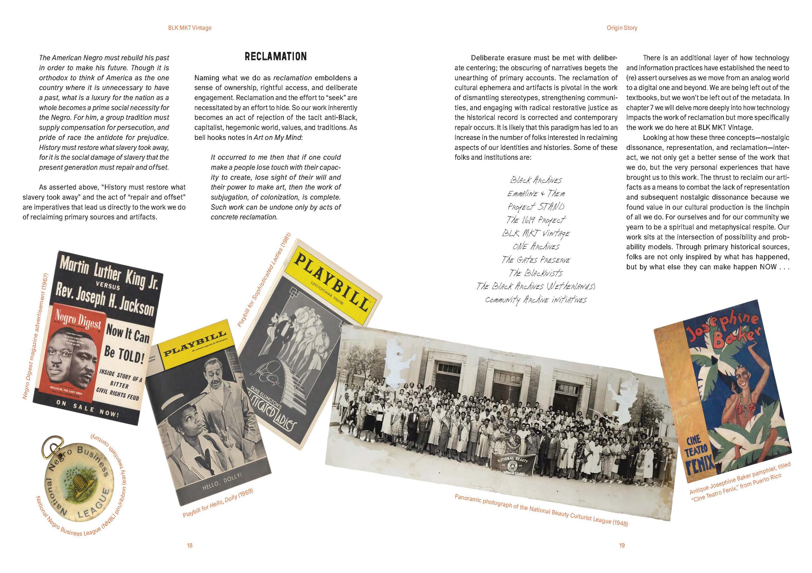 “BLK MKT Vintage is doing the painstaking heart work of documenting the cultural legacy of Blackness in America. Reclaiming objects . . . is an antidote to anti-Blackness and an elixir for weary Black souls in need of an infusion of the possibilities for the future that can be weaved from the past.”Tarana J. Burke, author and founder of the Me Too movement