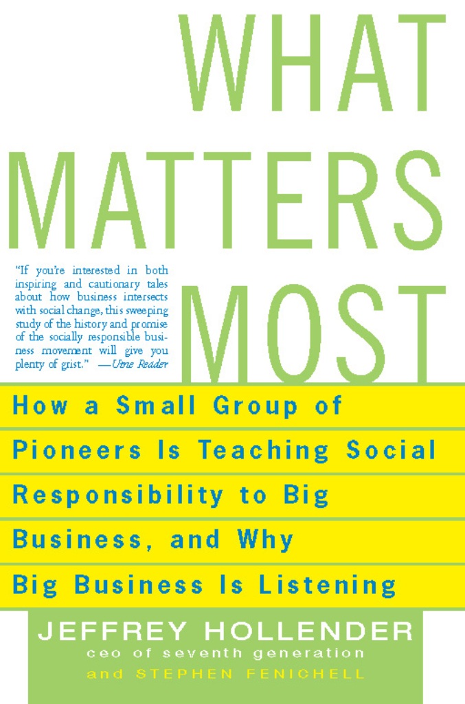 “What Matters Most stands out for its moderate and thoughtful analysis of a controversial issue . . . Hollender is a voice of reason in today’s important debate on corporate responsibility.” — Soundview Speed Reviews