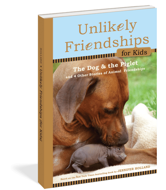 Unlikely Friendships, the runaway New York Times bestseller with a compelling message of hope and friendship and differences overcome, is rewritten just for younger readers. This hardcover chapter book for children ages seven and up collects five heartwarming true stories of animal friendship: a hippo and the goat who is his best friend, an iguana that snuggles with a cat, a dog that takes care of a blind deer, a cat and orangutan who become friends, and a mother dog who cares for a tiny piglet.