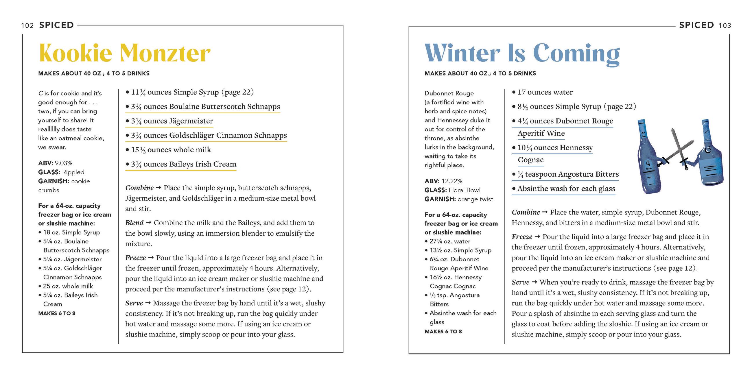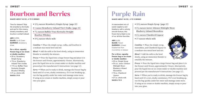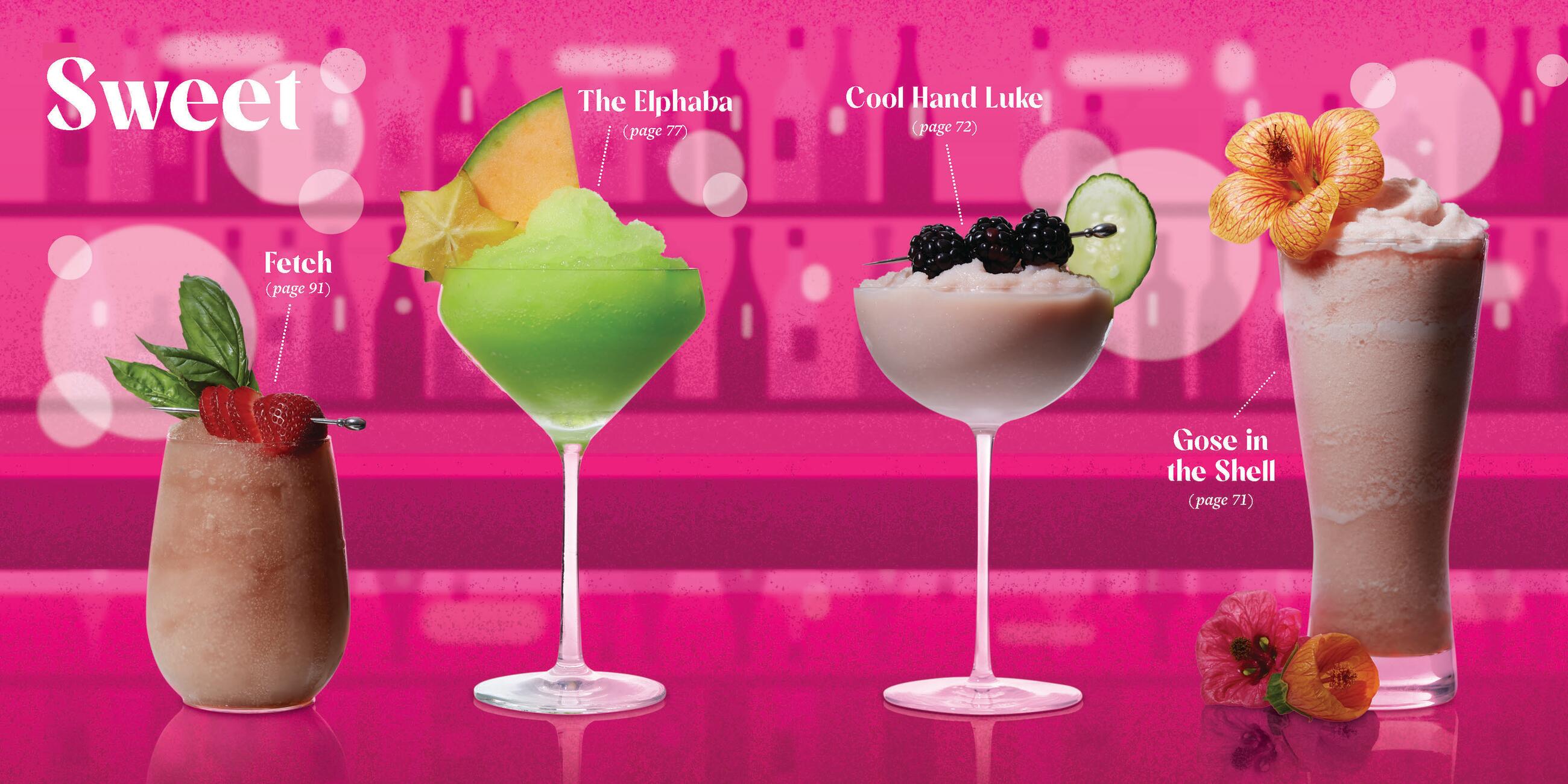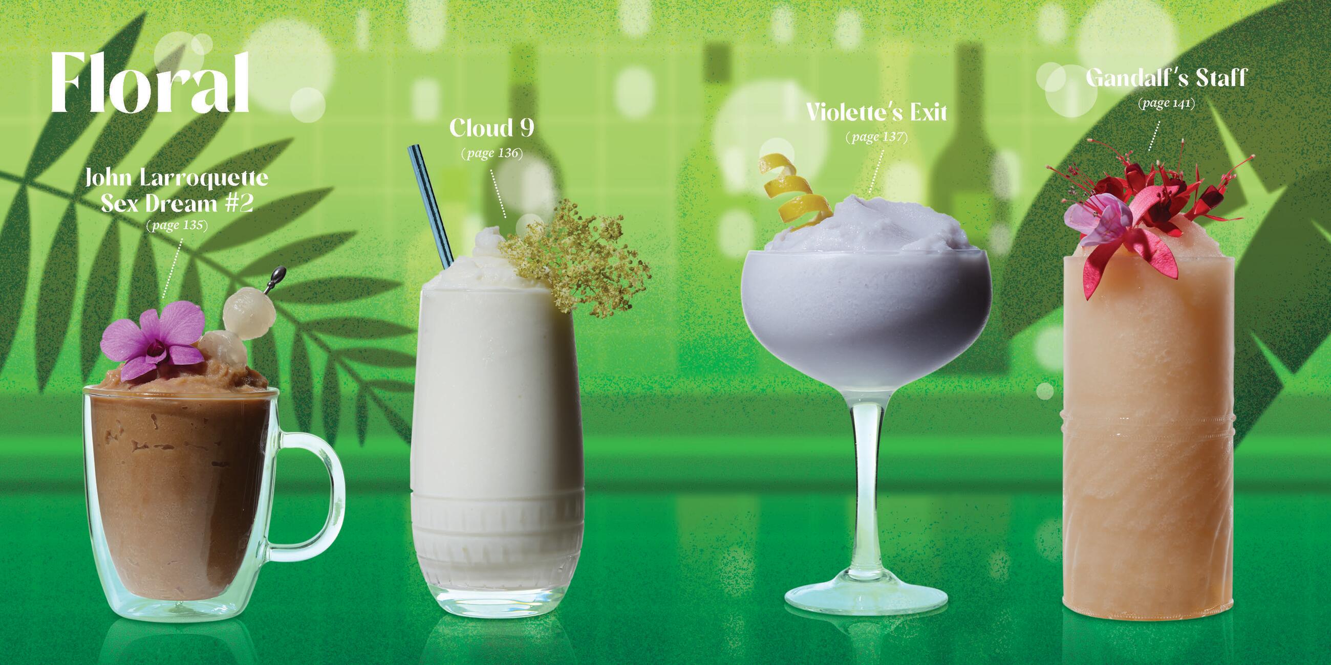 There’s something here for everyone. Choose from TART, SWEET, SPICED, or FLORAL and concoct something utterly delicious and totally refreshing. Chill like Prince with Purple Rain (p.83), sweet raspberry liqueur and blueberry moonshine mingle in frozen perfection. You shall not pass (up) on Gandalf’s Staff (p.141), a frozen IPA and elderflower liqueur shandy to shire with friends. And take flight with The Wintergreen Fairy (p.117), mint simple syrup, Aperol, and absinthe flutter on your tastebuds.
