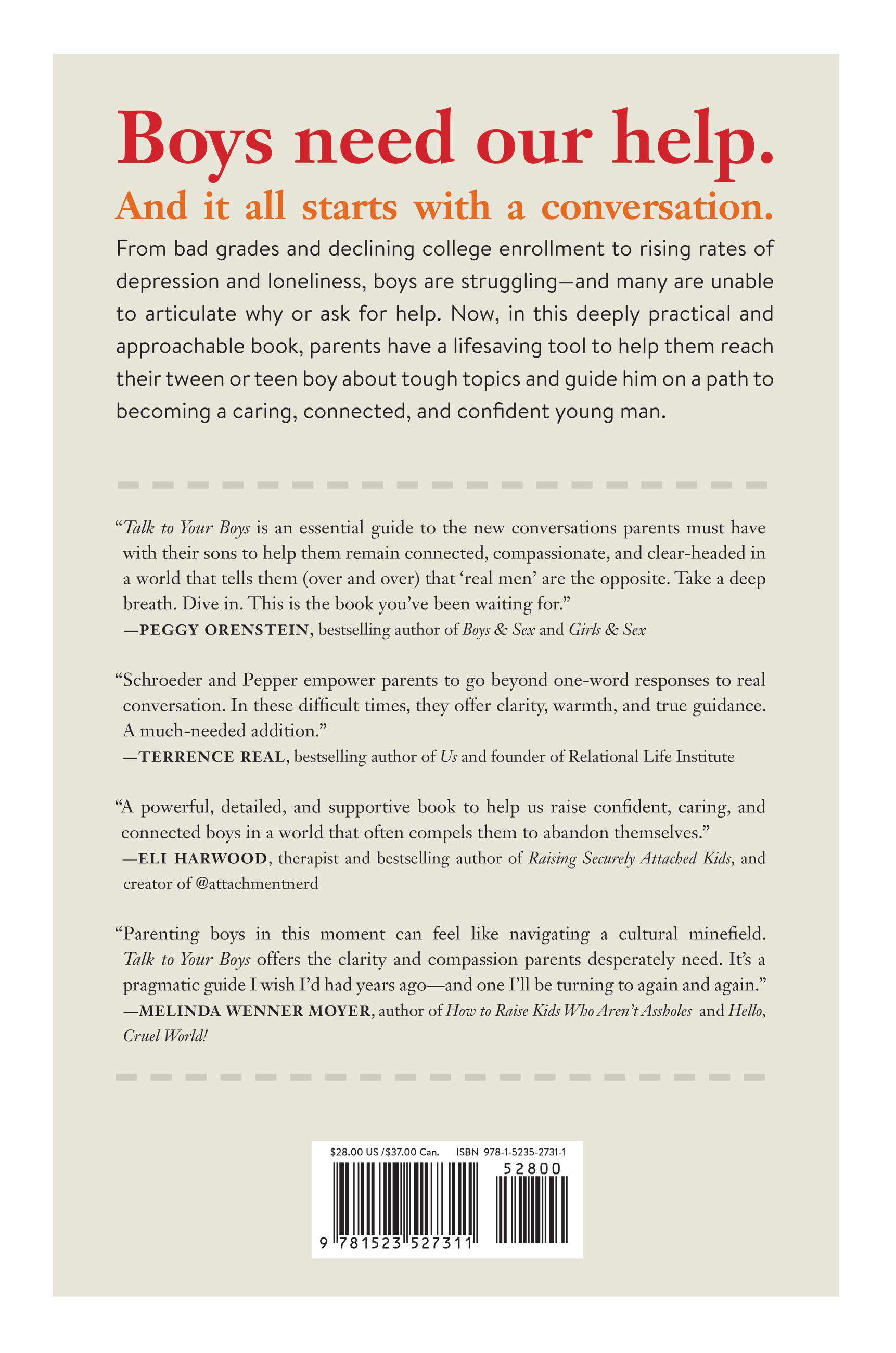 “Talk to Your Boys by Schroeder and Pepper is the book we’ve been waiting for—a game-changing guide that tackles one of the most pressing challenges of parenting today: how to talk with boys about the things that matter most. Talk to Your Boys makes it clear that connecting with the boys in our lives is not only possible, but essential. This book is required reading for anyone who cares about raising boys to thrive emotionally, build strong relationships, and grow into healthy, whole adults.”