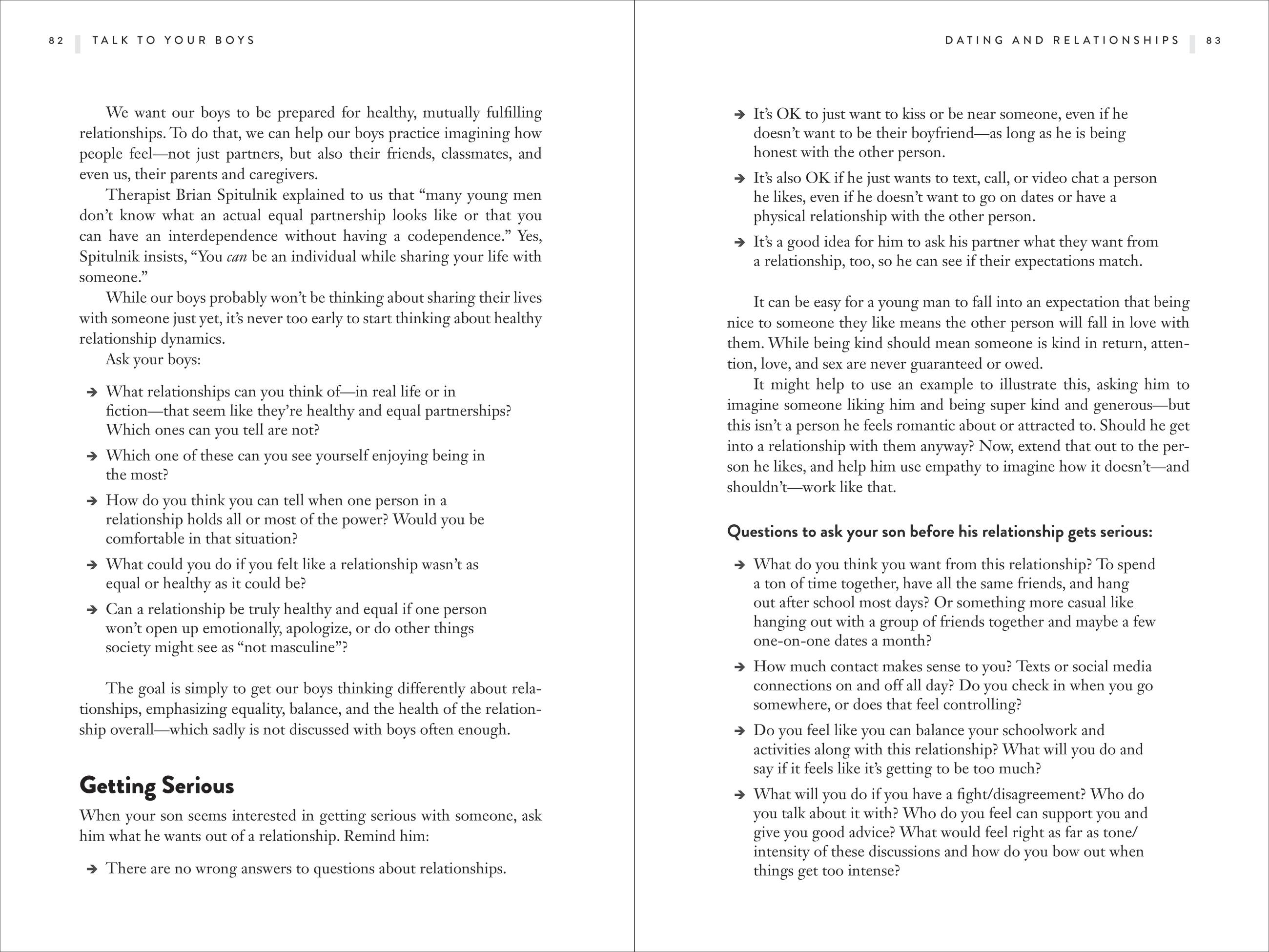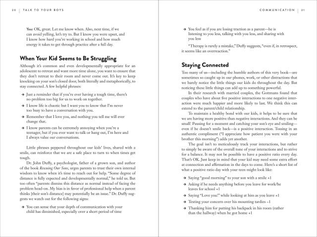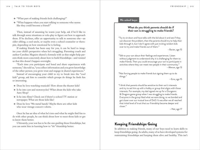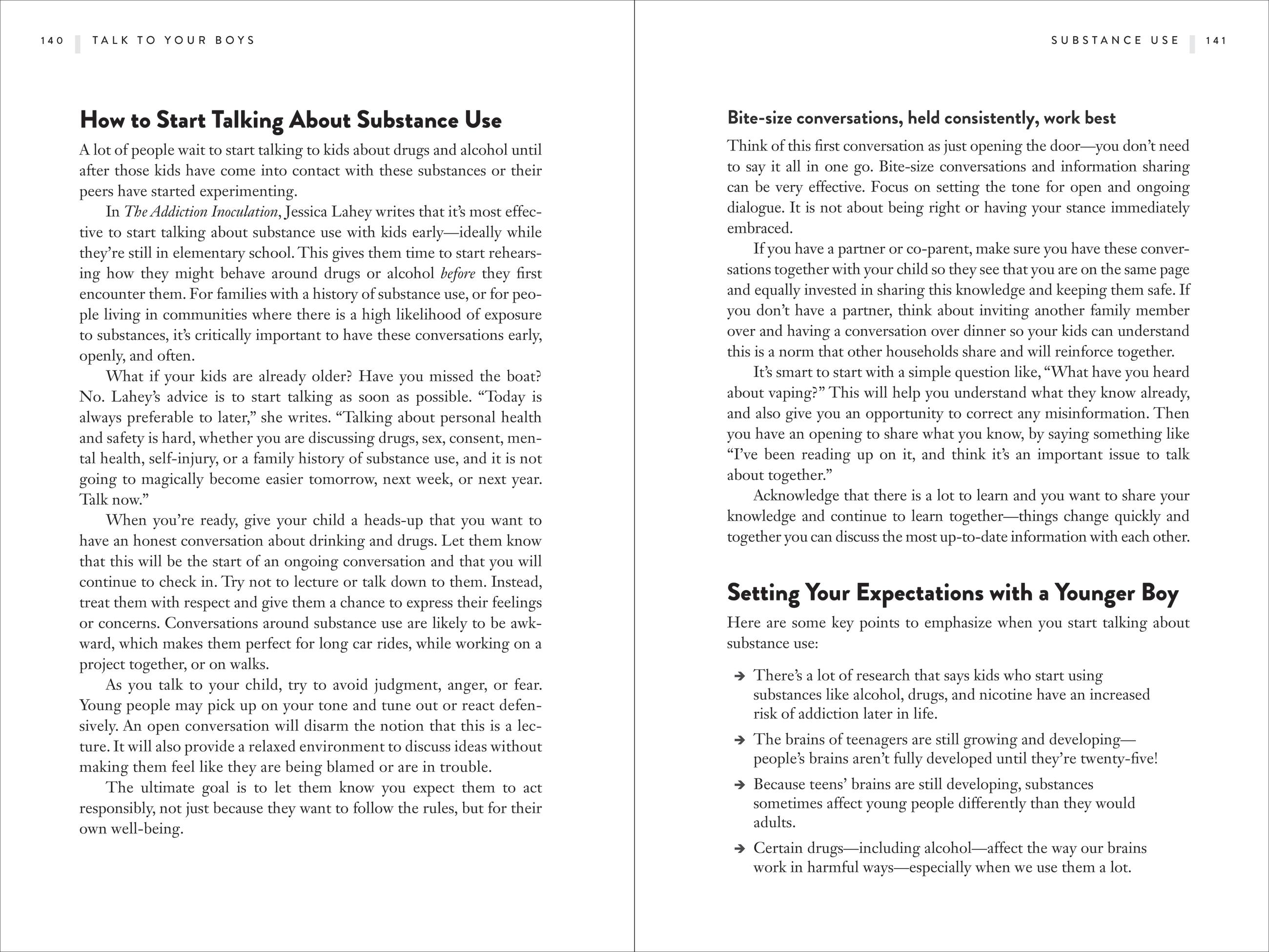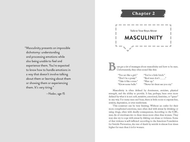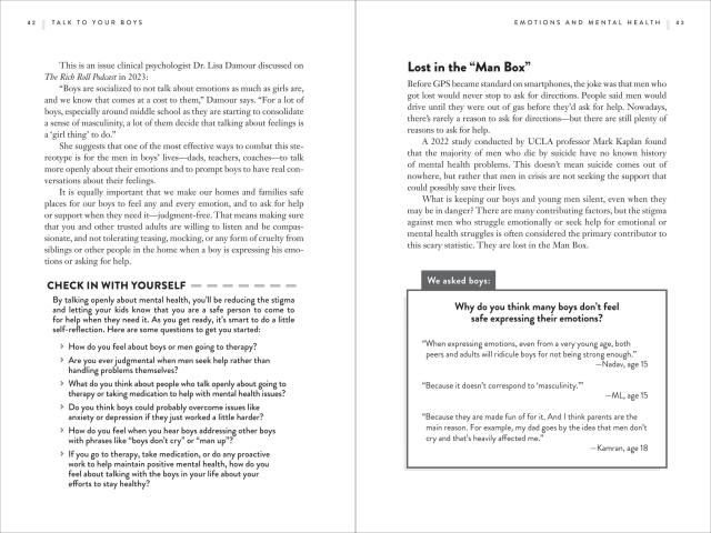 Talk to your Boys is a practical guide to communicating with your tween and teen boy with the goal of raising young men who care about themselves and others. The book focuses on 16 essential and wide‑ranging conversations on mental health and masculinity, sex and consent, money and power, violence and guns, and more. Packed with helpful advice, conversation starters, tips and scripts, Talk to Your Boys is designed to help families get better at having these crucial, but sometimes awkward, discussions with the larger goal to raise emotionally intelligent men who aren’t hemmed in by outdated ideas of masculinity.