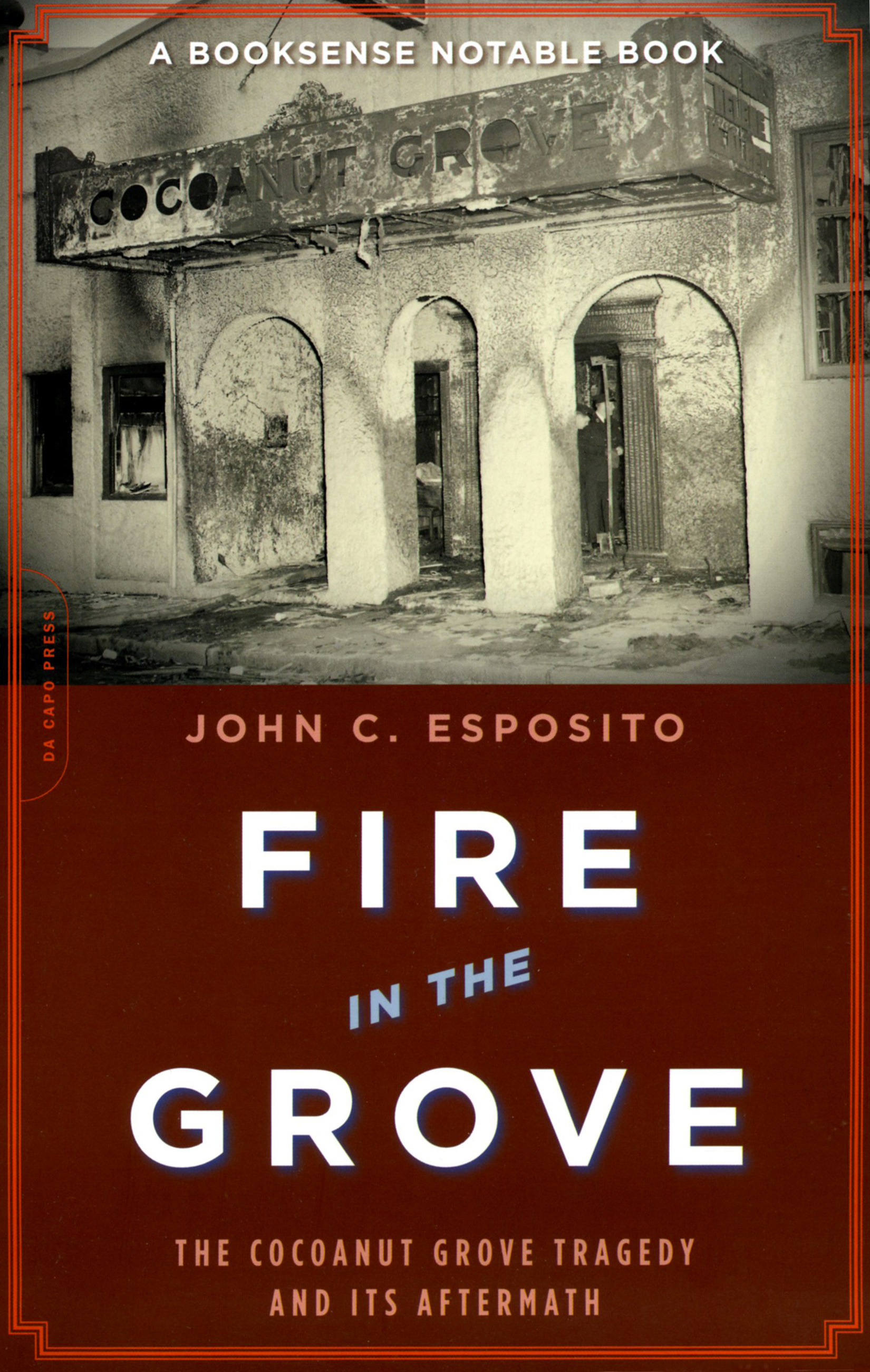 On Saturday night, November 28, 1942, Boston suffered its worst disaster ever. At the city’s premier nightspot, the Cocoanut Grove, the largest nightclub fire in U.S. history took the lives of 492 people–nearly one of every two people on the premises. A flash of fire that started in an imitation palm tree rolled through the overcrowded club with breathtaking speed and in a mere eight minutes anyone left in the club was dead or doomed. The Grove was a classic firetrap, the product of greed and indifference on the part of the owners and the politicians who had knowingly allowed such conditions to exist. Against the backdrop of Boston politics, cronyism, and corruption, author John C. Esposito re-creates the drama of the fire and explores the public outcry that followed. In retelling the horrific events of one of America’s most cataclysmic tragedies, Esposito has fashioned both an incomparably gripping narrative and a vibrant portrait of the era. But it is the intense, detailed narrative of the fire–harrowing yet compulsively readable–and the trials that followed that will stay with the reader well after they finish this remarkable book. “[Esposito] reminds us that the cautionary tale of the Cocoanut Grove is still relevant today.” (New York Law Journal)