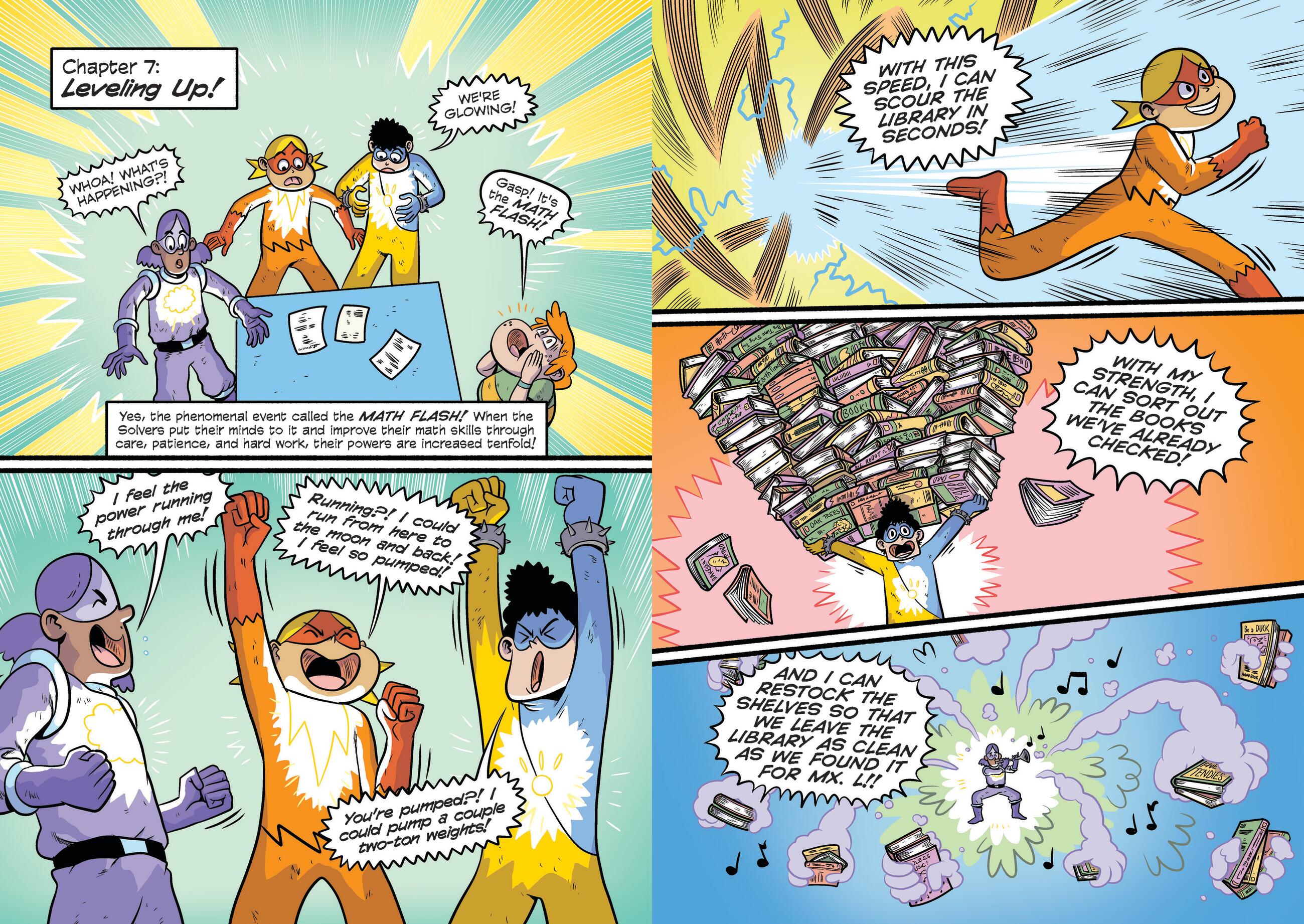 In this graphic novel series, a crew of crime-fighting kid superheroes teach readers ages 8 and up foundational math skills, such as multiplication and division, as they battle their evil nemesis, Null Void. All math concepts are presented with fully illustrated step-by-step instructions and tons of superhero themed visual examples.