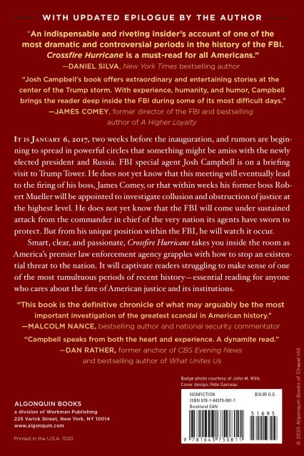 “Crossfire Hurricane is likely to become one of the most important books of the year. Josh Campbell speaks both from the heart and experience. A dynamite read.”
