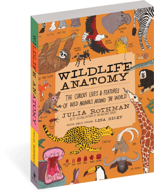 Julia Rothman’s series of Anatomy books are beloved by children and adults alike. In Wildlife Anatomy, Rothman captures the excitement and distinctive attributes of wild animals around the world. The book is packed with hundreds of her charming, original illustrations, detailing the unique features of animals of the rainforest, desert, grasslands, oceans, and much more. From lions, bears, and zebras to monkeys, mongoose, bats, elephants, giraffes, hippos, and much more, Rothman’s visual guide covers all the key features, right down to the anatomy of a lion’s claw and a wild horse’s hoof. All the illustrations are accompanied by labels, intriguing facts, and identifying details, such as: When is a Panther Not a Panther? and What Makes Aardvarks So Odd? Rothman’s characteristic combination of curiosity and an artist’s eye makes this wildlife treasury rich and full, and promises new discoveries every time it’s opened.