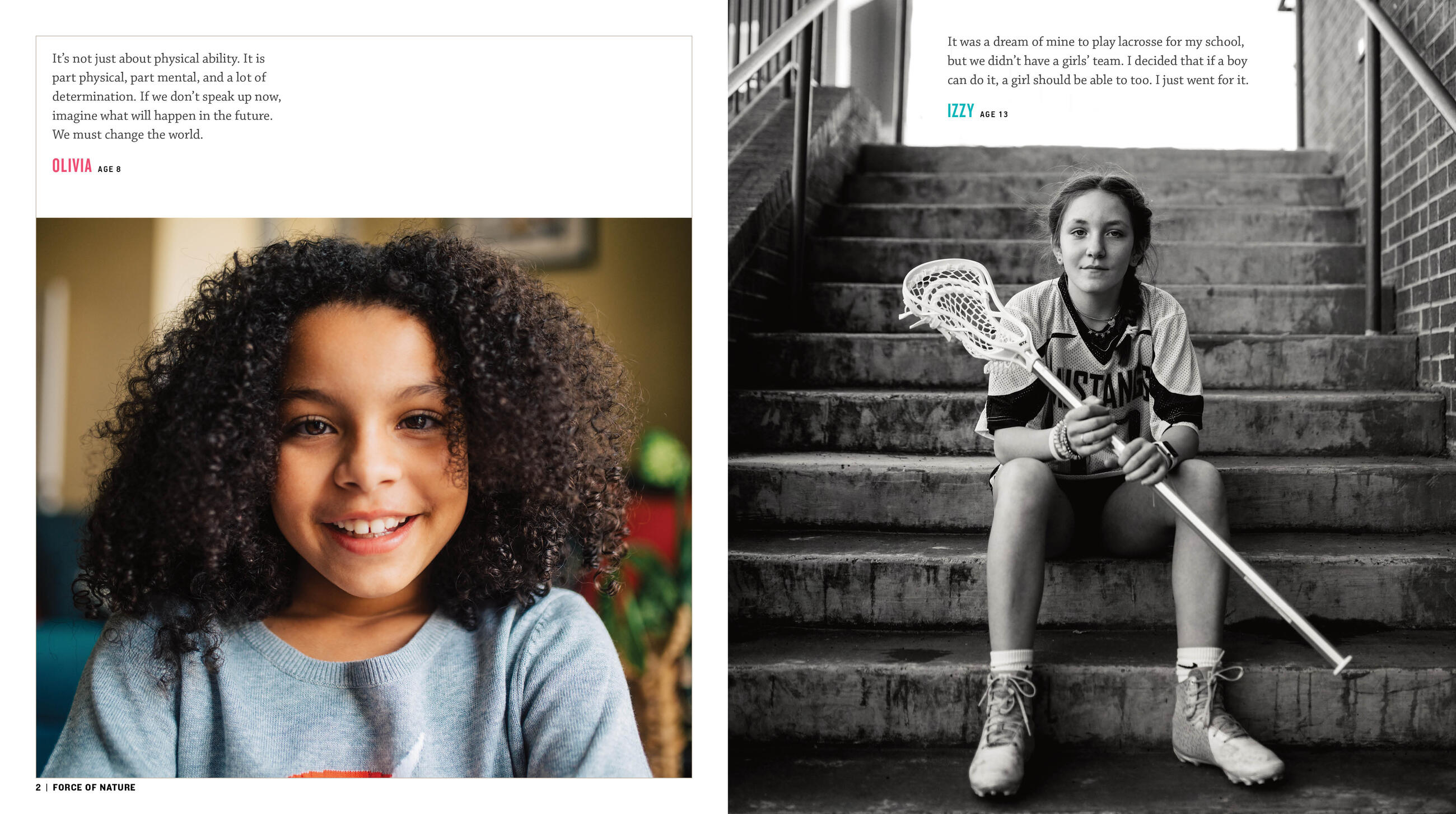 Mothers lifting up their daughters. Sisters standing their ground. Classmates lending a helping hand. Here are more than 150 full-color and black-and-white images of girls and women in the process of speaking up and speaking out. Force of Nature, the third installment in the Strong Is the New Pretty series by bestselling author-photographer Kate Parker, is split into four chapters—Find Your Voice, Use Your Voice, Amplify Your Voice, and Sustain Your Voice. The book and its subjects tackle issues big and small with the power and wisdom of their voices and their confidence in themselves. Individually and collectively, these girls and women—and their voices—are a force of nature. Some arrive in the form of urgent whispers while others positively roar off the page. Each photo is accompanied by a quotation from the subject talking about how she has found or used her voice to uplift herself and others. Throughout the four chapters are ten “spotlights” that feature additional photos and extended essays that tell the stories of exceptional girls and women who are navigating the complexities of making change every day.