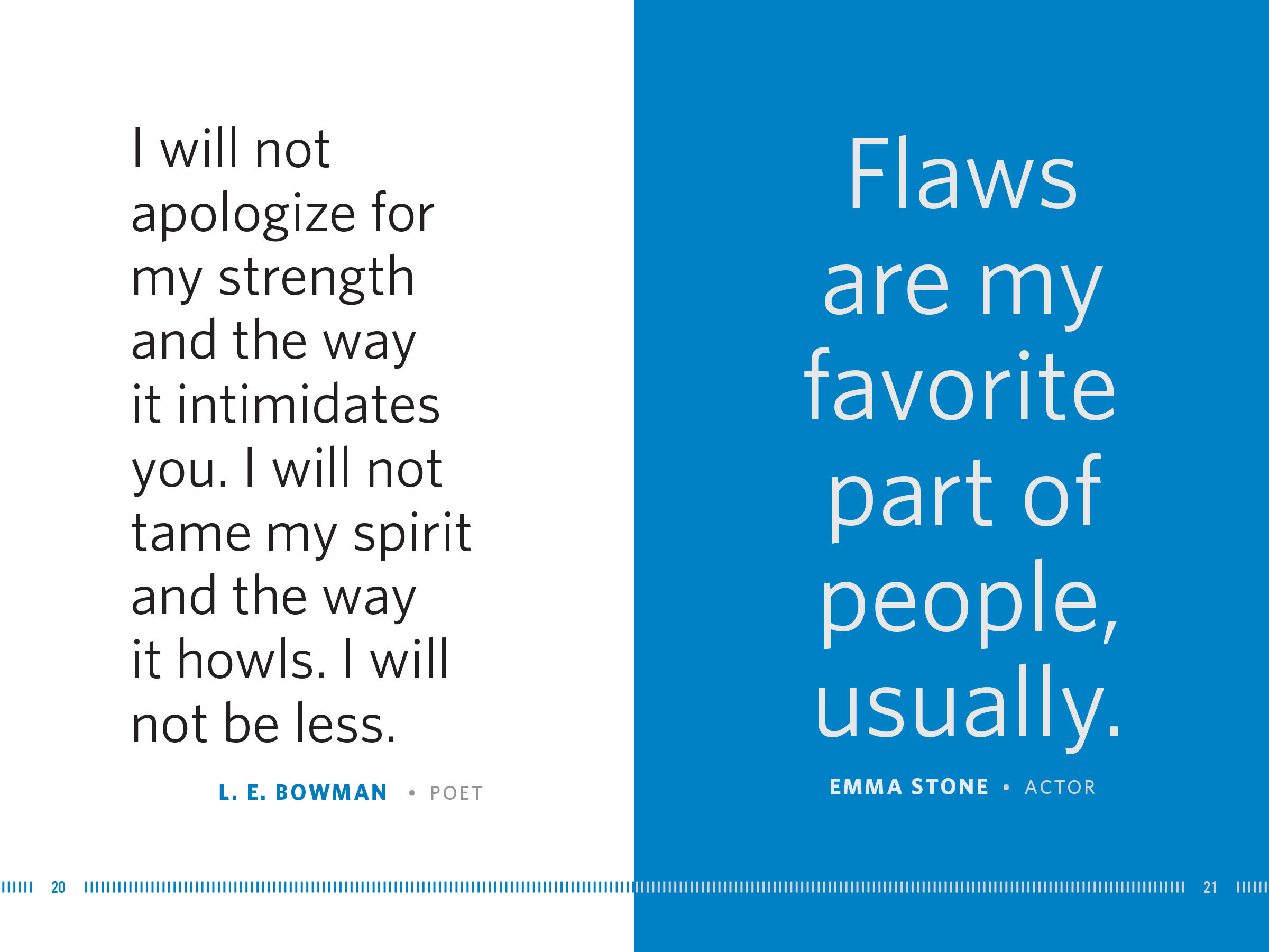 Do you ever feel different? A little weird, a little wacky? It’s time to own it, because, as Meryl Streep proclaimed, “what makes you different or weird, that’s your strength.” In this inspiring collection, singers, poets, actors, activists, comedians, designers, athletes, and philosophers share wise and pithy reflections on what it’s like to march to the beat of a different drummer. Every statement is a powerful, positive reminder that to live successfully is to be completely unapologetically you.