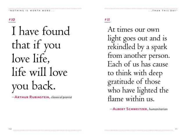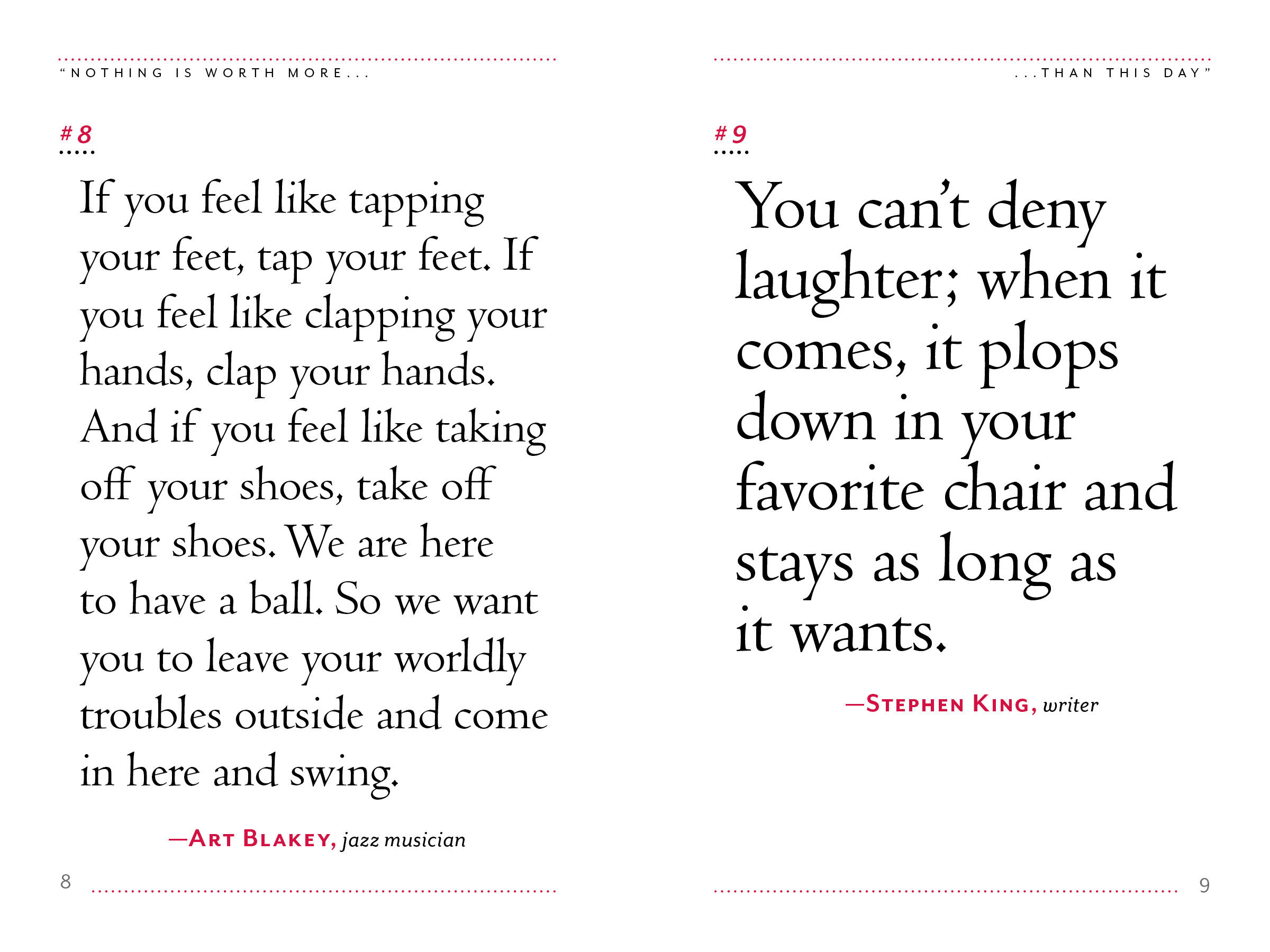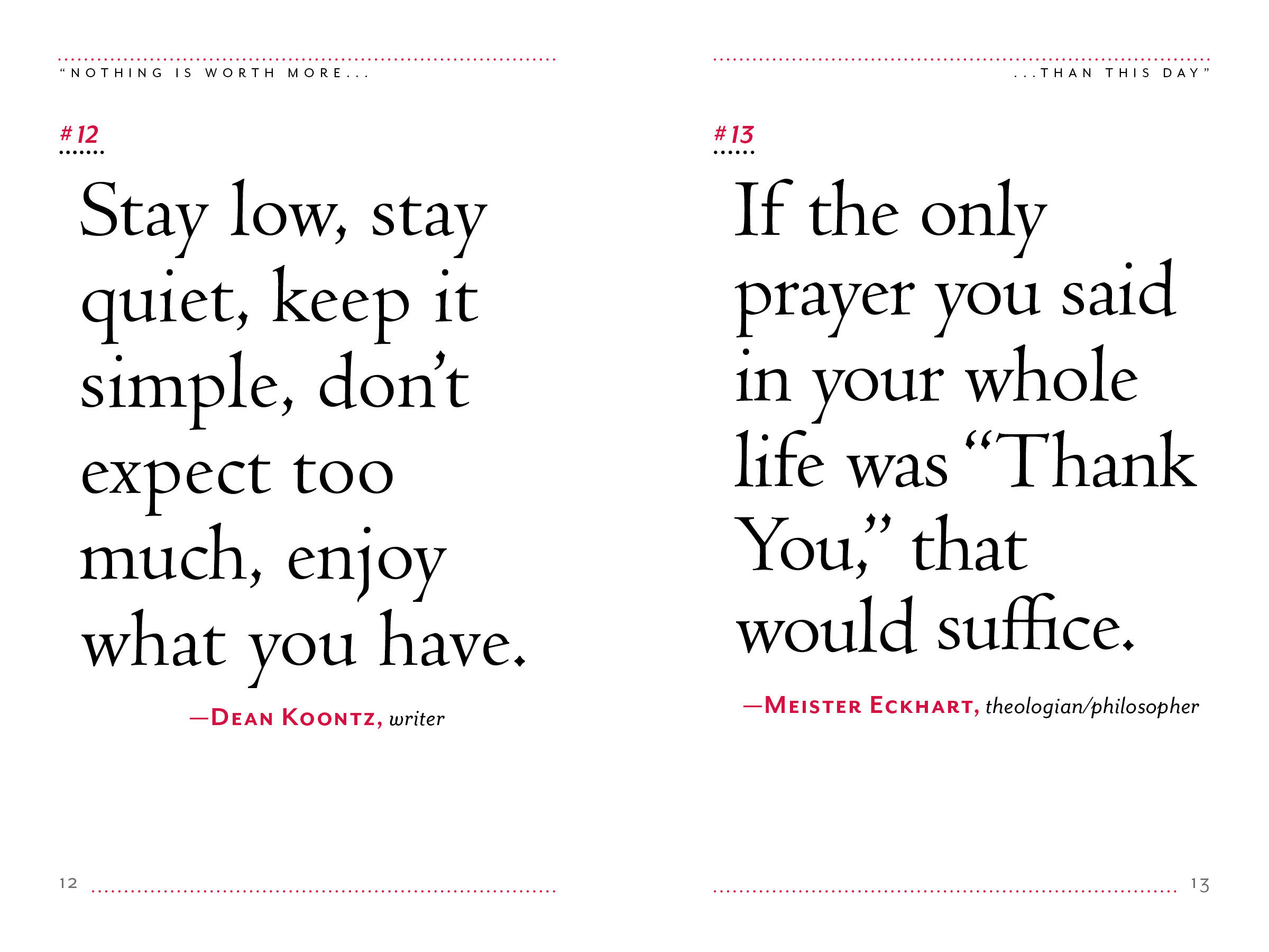 A book of inspirational quotations, Nothing Is Worth More Than This Day presents hundreds of reminders from some of the smartest people who ever lived—from Dr. Seuss to Erma Bombeck, Thich Nhat Hanh to Lena Dunham—that happiness is everywhere and the glass is half-full. It’s the perfect gift of optimism, for good times and not-so-good times.