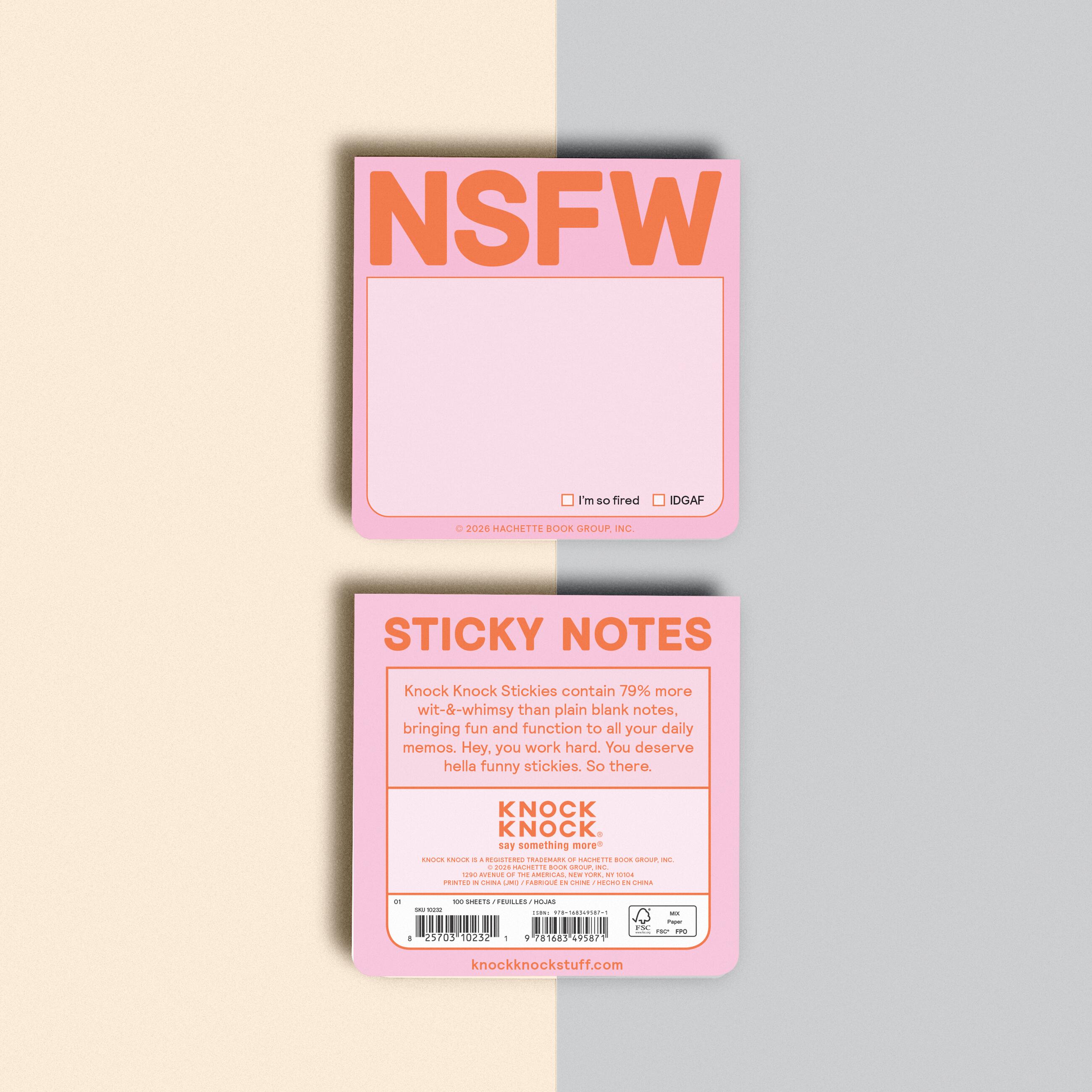 The NSFW (aka Not Safe for Work) sticky note gives a wink and a nod to popular slang and adds a cheeky element to everyday office supplies and paper goods.