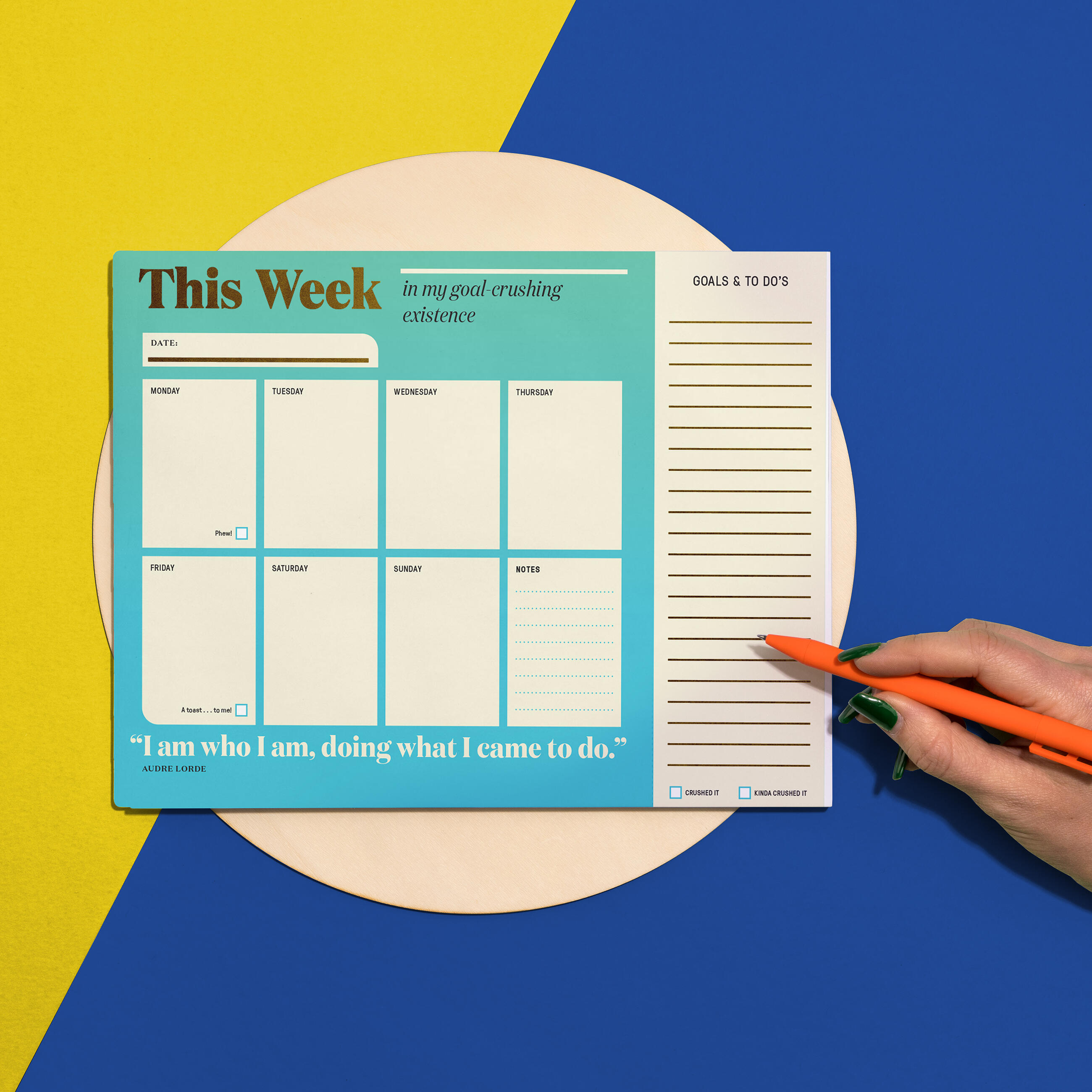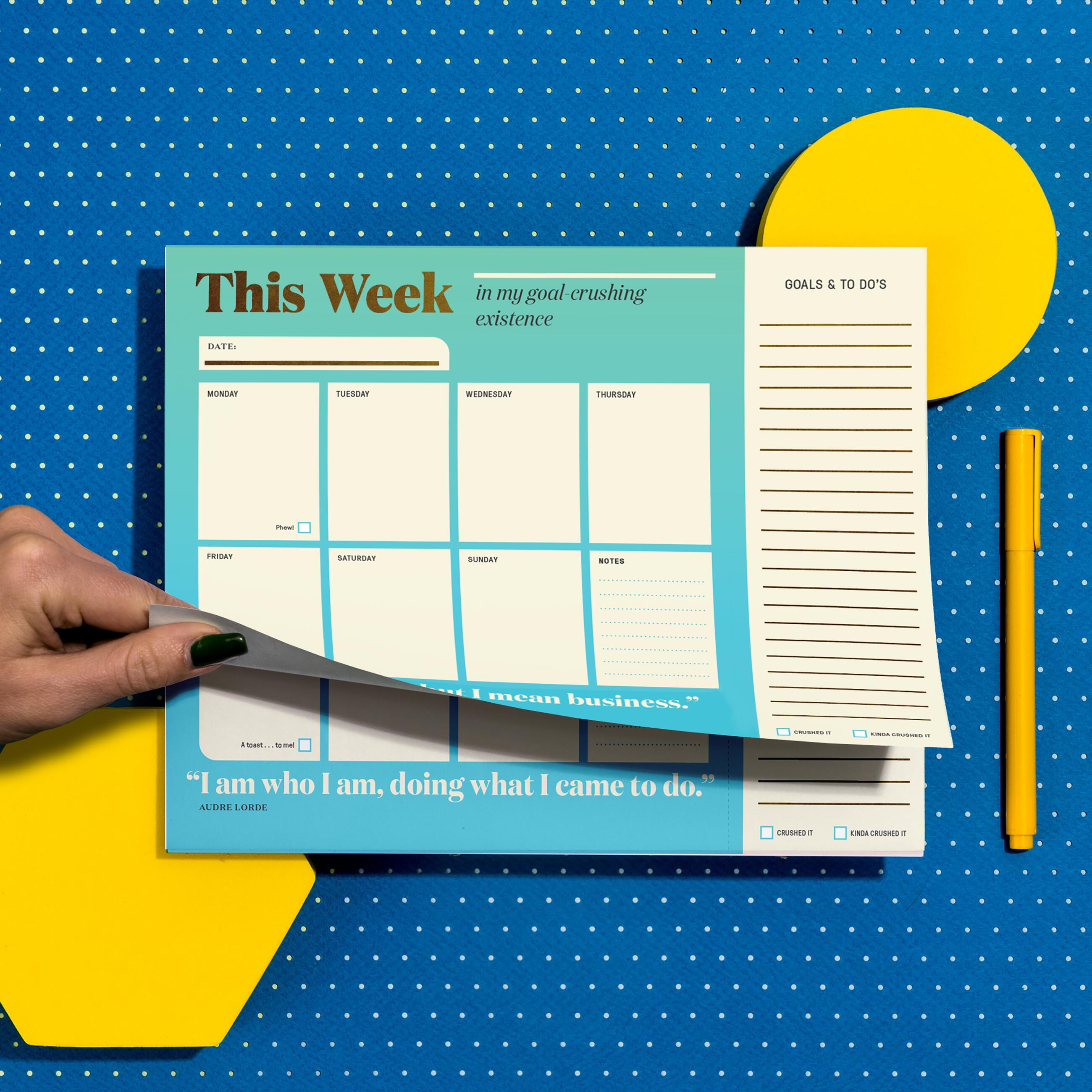 Make each week a little more inspiring with this gorgeously motivational undated planner. It’s got 60 original quotes from goal-crushing champs (aka writers, actors, artists, athletes, scientists, etc.), fancy gold foil, plus a handy tear-and-go area for to-do lists & such. #goals!
