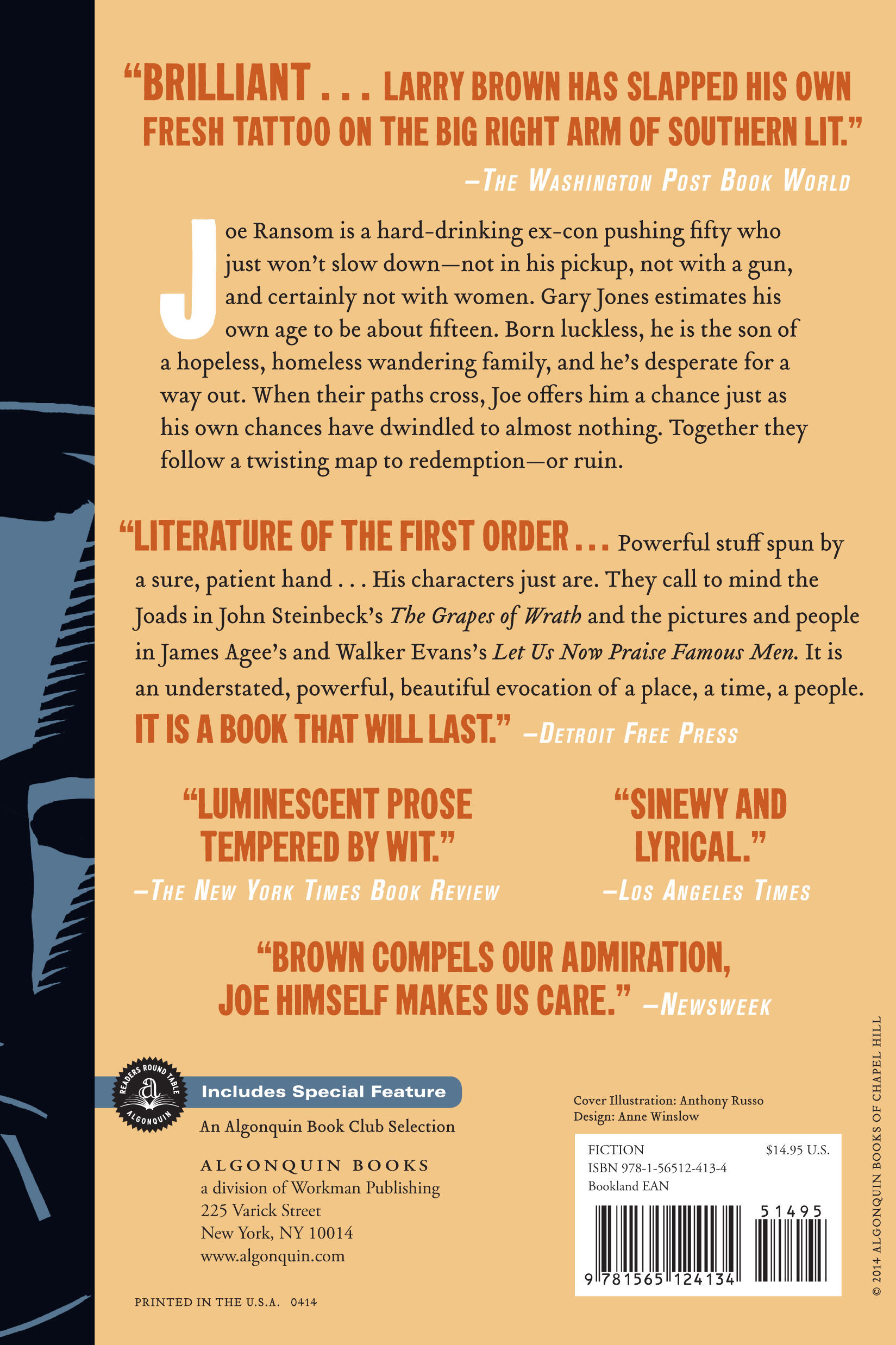 "Larry Brown is establishing himself as one of the most authentic literary voices of our generation. It's a voice framed, as many great voices have been, in the inflections of the South. It's a voice as true as a gun rack, unpretentious and uncorrupted, full of wit and sorrow."